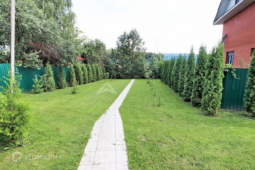 На участке выполнен ландшафтный дизайн, разбит газон, высажены плодовые и хвойные деревья, проложены дорожки.