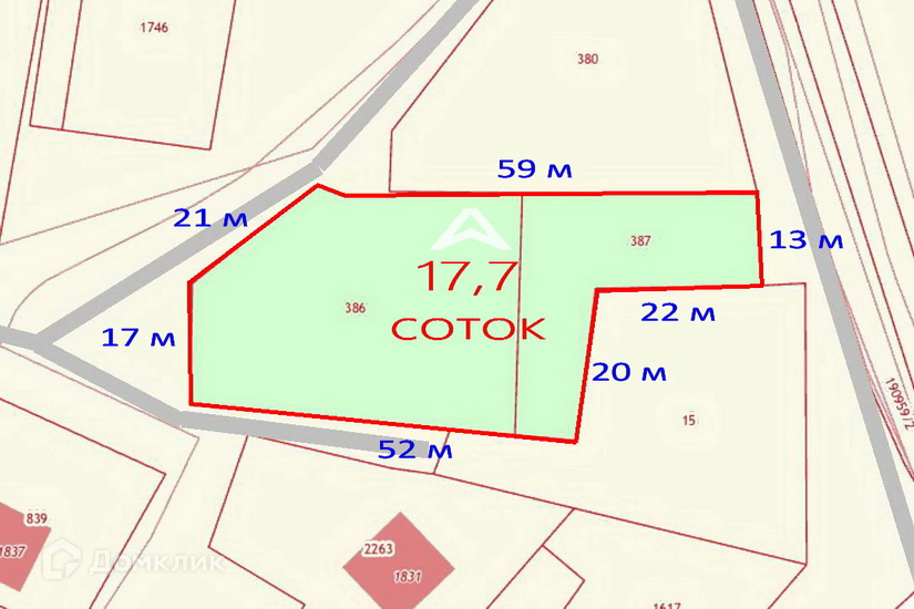 УЧАСТОК состоит из двух участков с кадастровыми номерами 50:09:0050701:386 и 50:09:0050701:387.