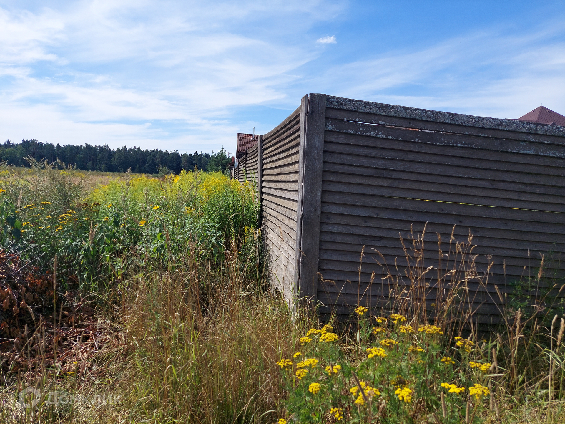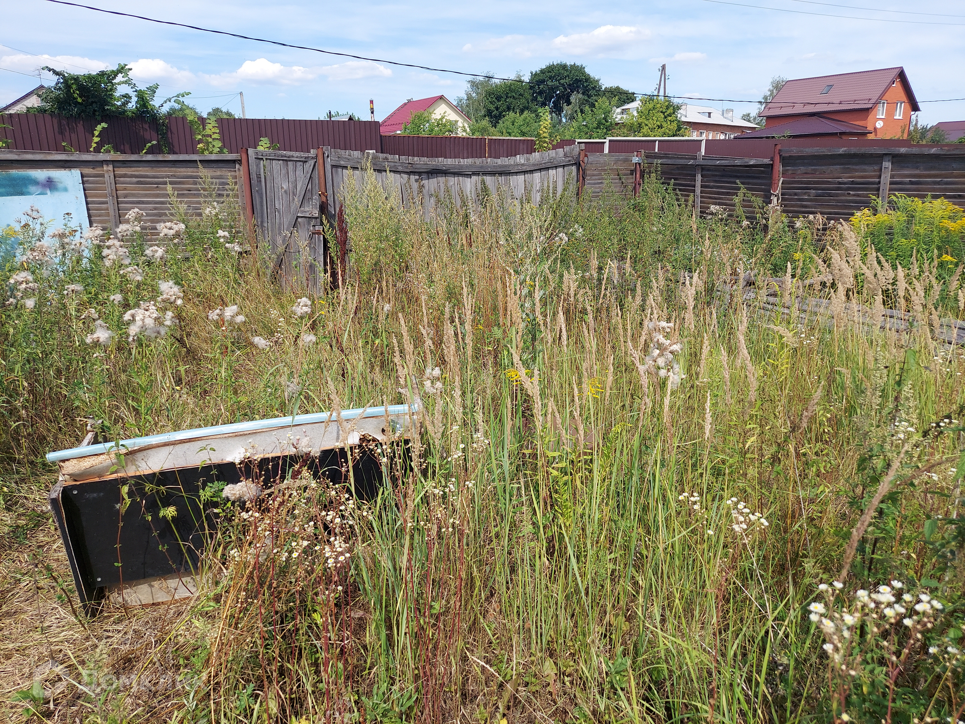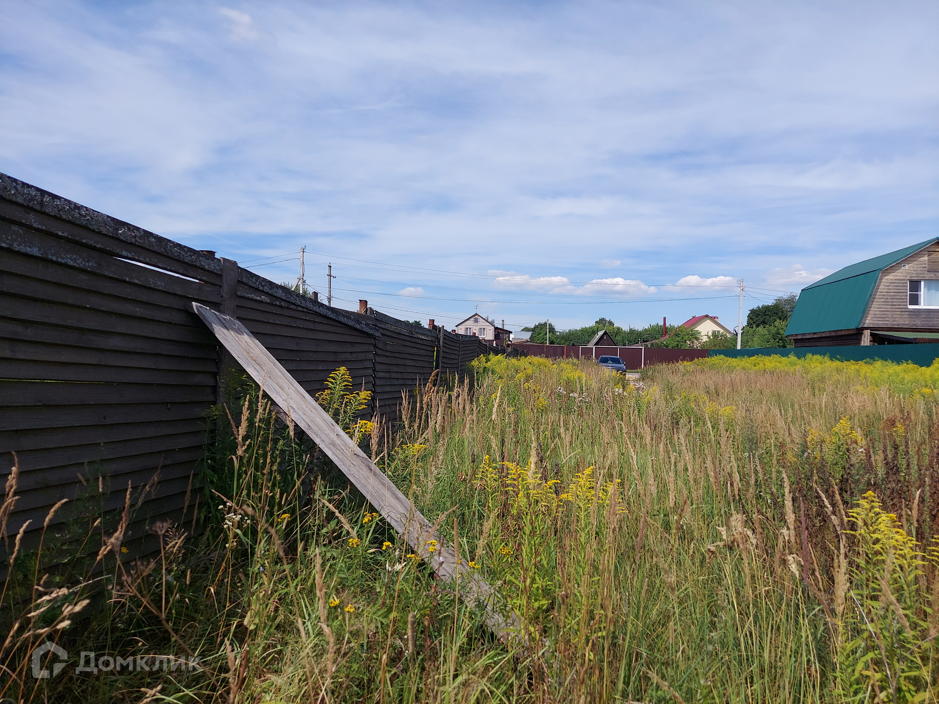 Огорожен забором (забор ветхий).