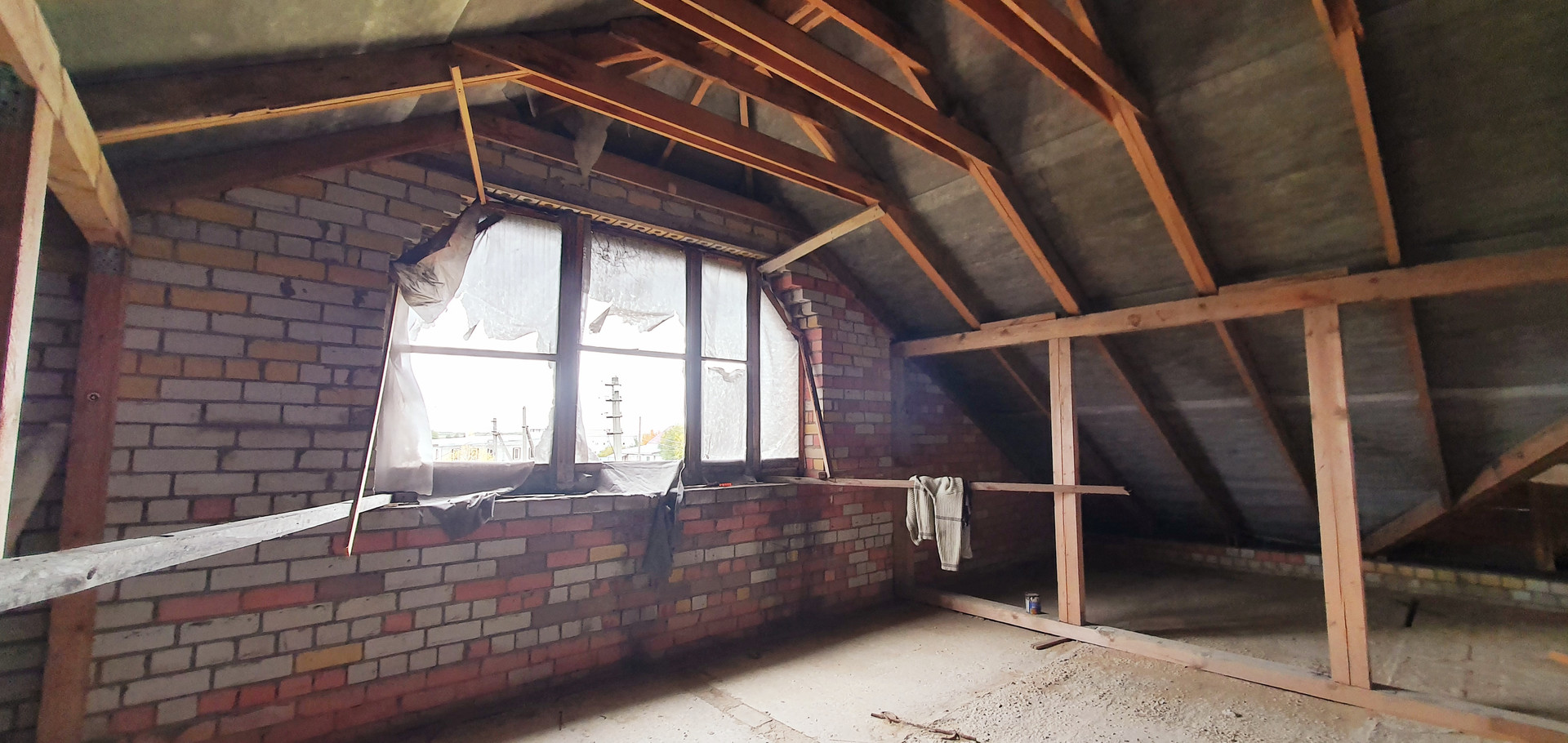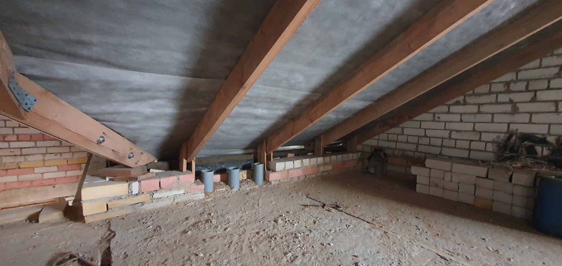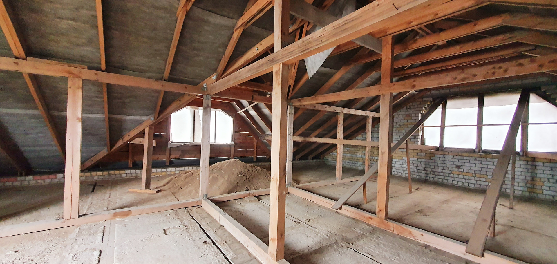 Под крышу выведены деревянные стропила из качественного бруса.