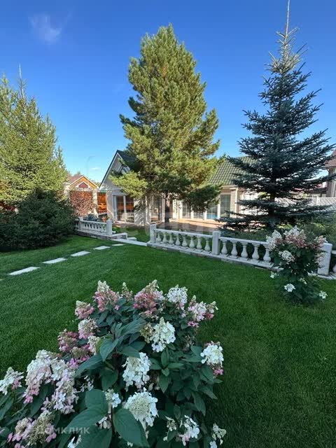 Ухоженная территория дома весьма впечатляет своим классическим стилем, зеленью и уникальными декоративными элементами,включая фонтан из белого мрамора,огромные туи,голубые ели.На территории баня,бассейн с теплым полом,функционирующий камин,мангал-всё в комплексе для отдыха. Коттедж находится среди природы в тихом месте вдали от городской суеты. Всё что нуж