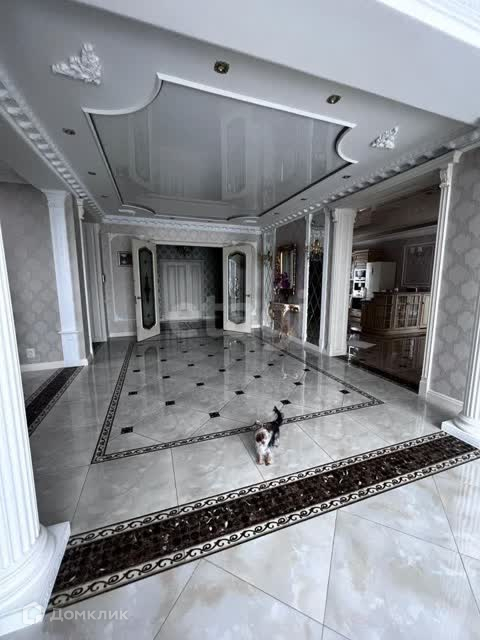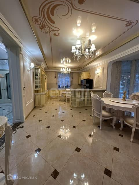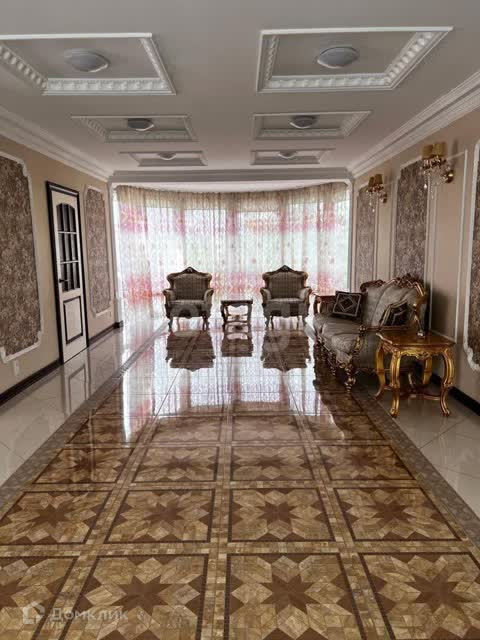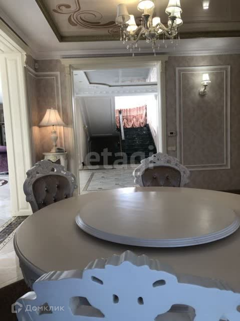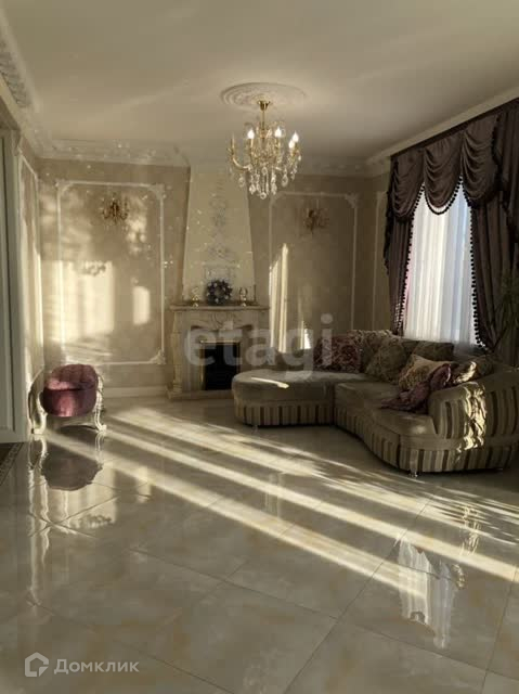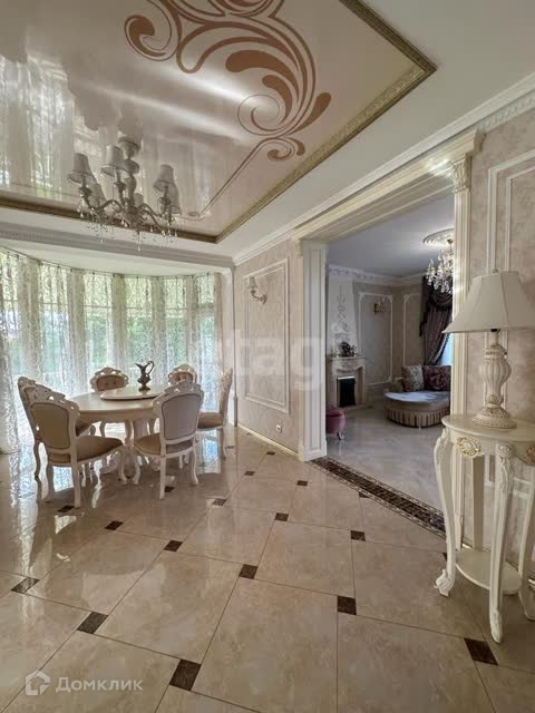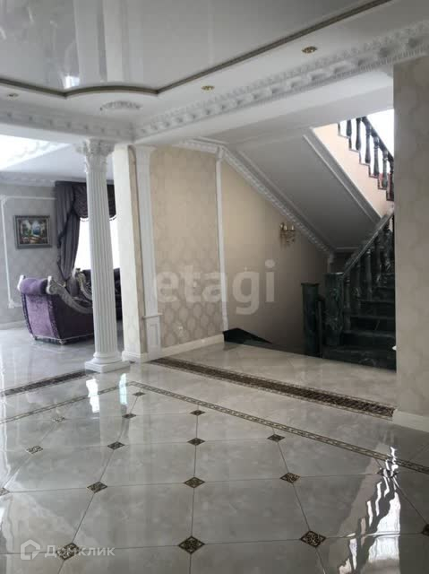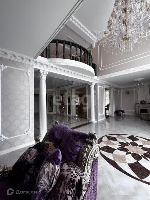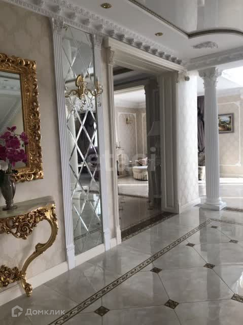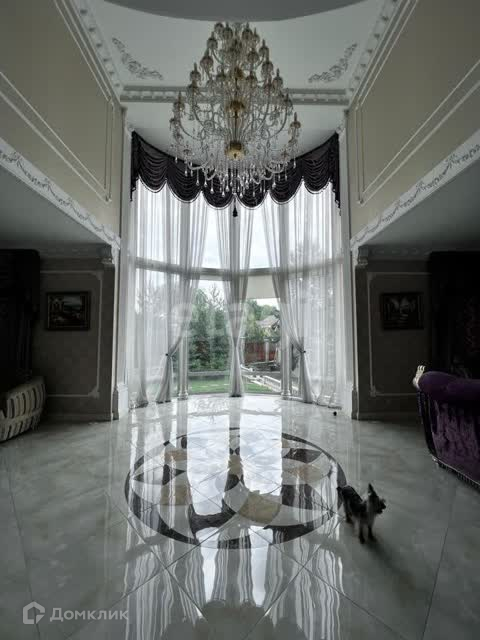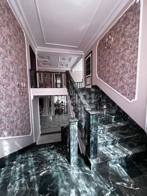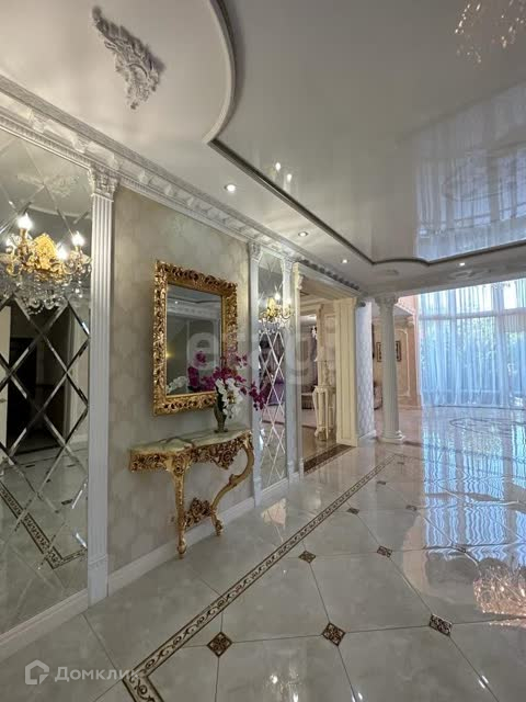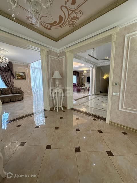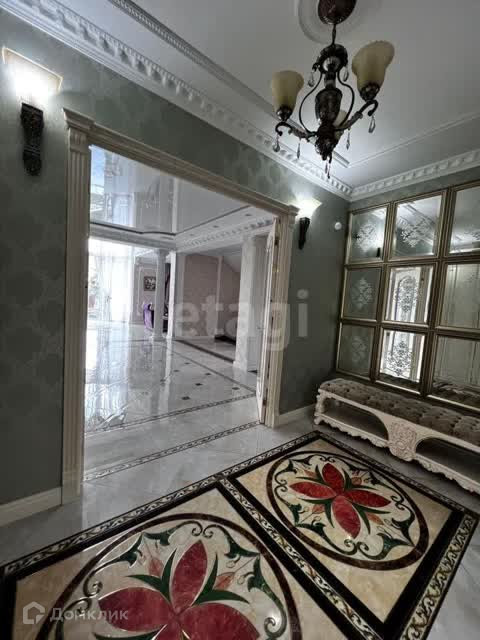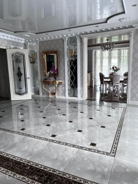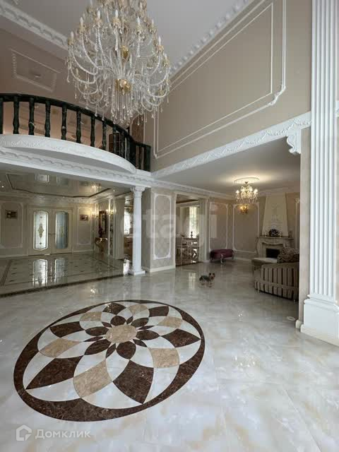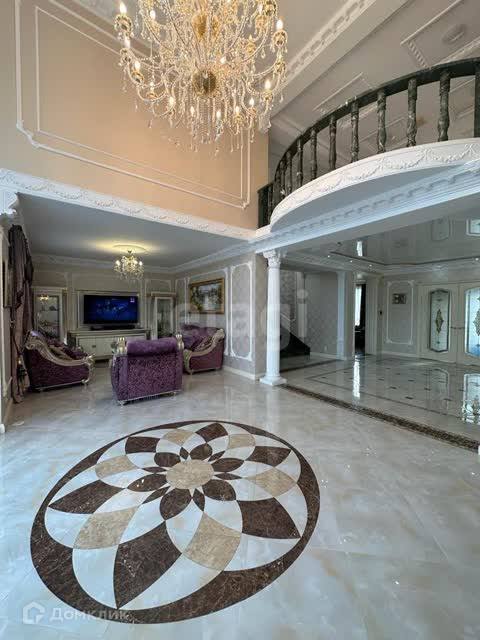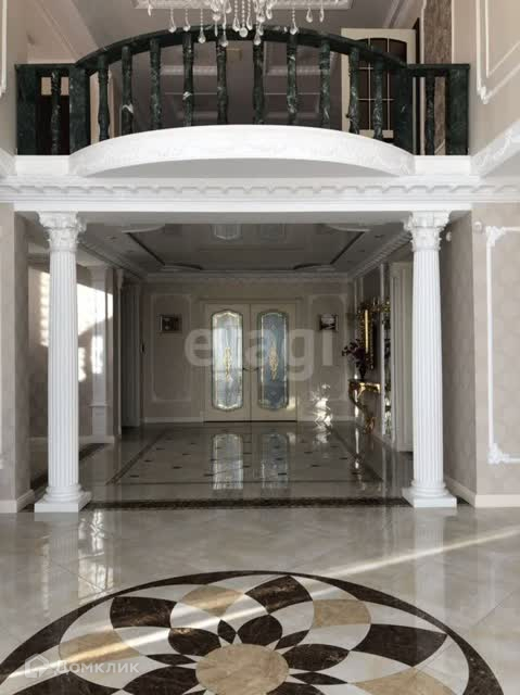 В отделке использован мрамор,зеркальный керамогранит,зеркала. Зонированное освещение,панорамные окна-всё это создаёт в доме очень светлое настроение, в любую погоду от рассвета до заката система евро -климат.Дизайн дома уникален тем,что лестничной марш из мрамора, широкие проёмы и шикарные итальянские люстры создают торжественный вид.