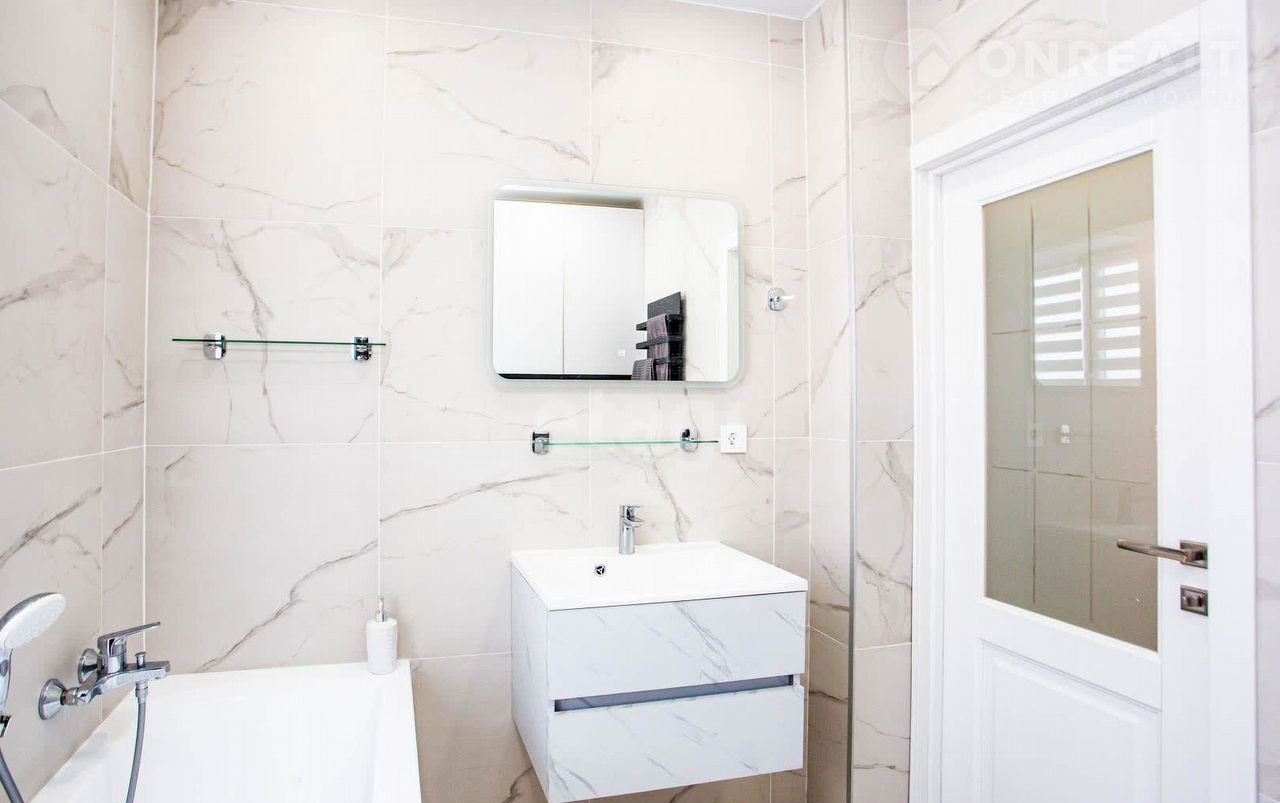 * Теплый электрический пол, натяжные потолки, межкомнатные двери.