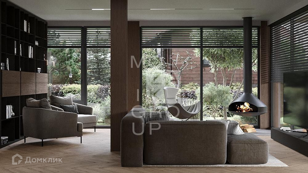 ID 542732. КП Заря. Новый современный дом в стиле фахверк 215 кв.м на участке 9,8 соток в охраняемом коттеджном поселке. В доме панорамное остекление с видом на лес, высокие потолки.