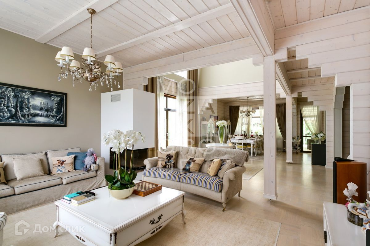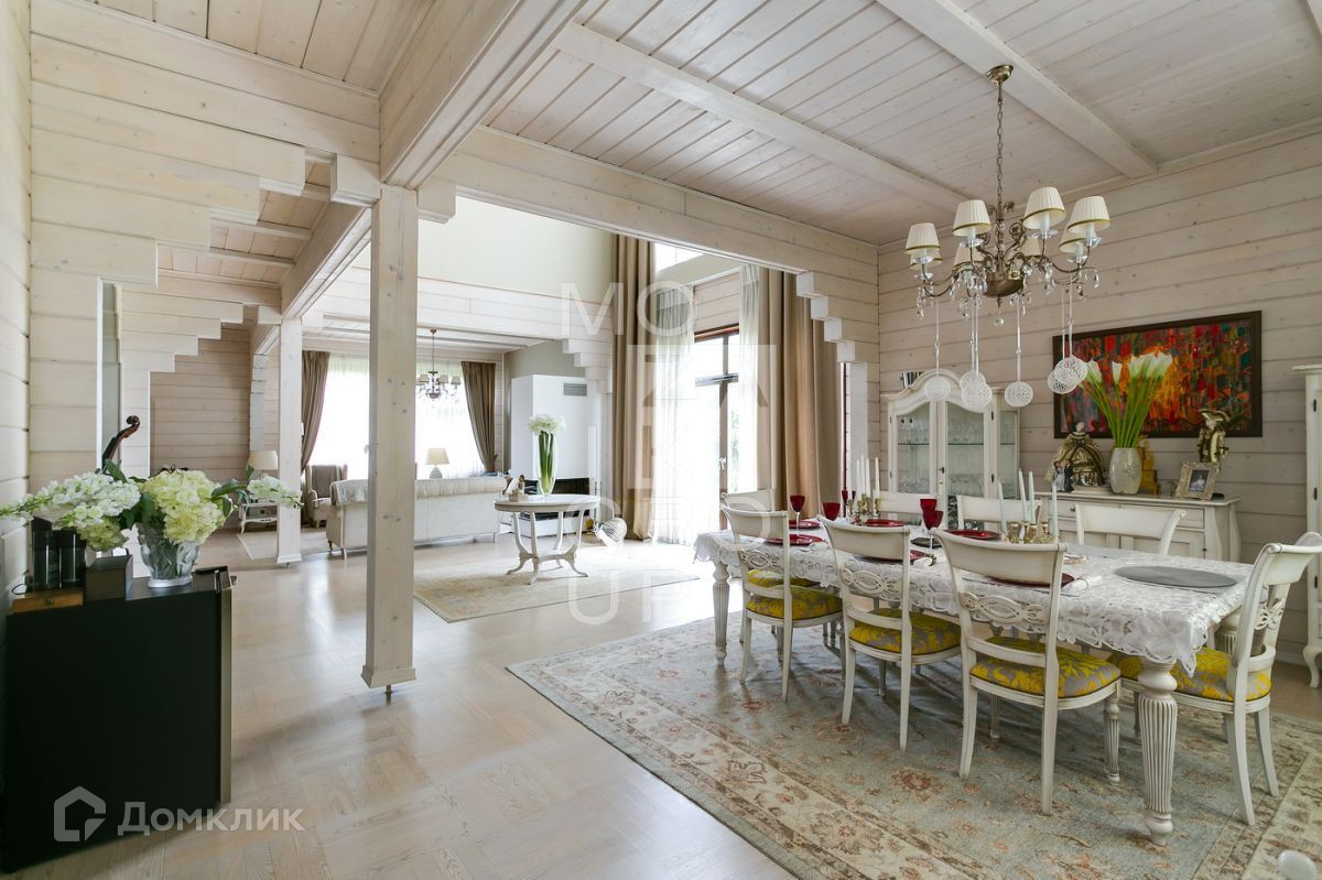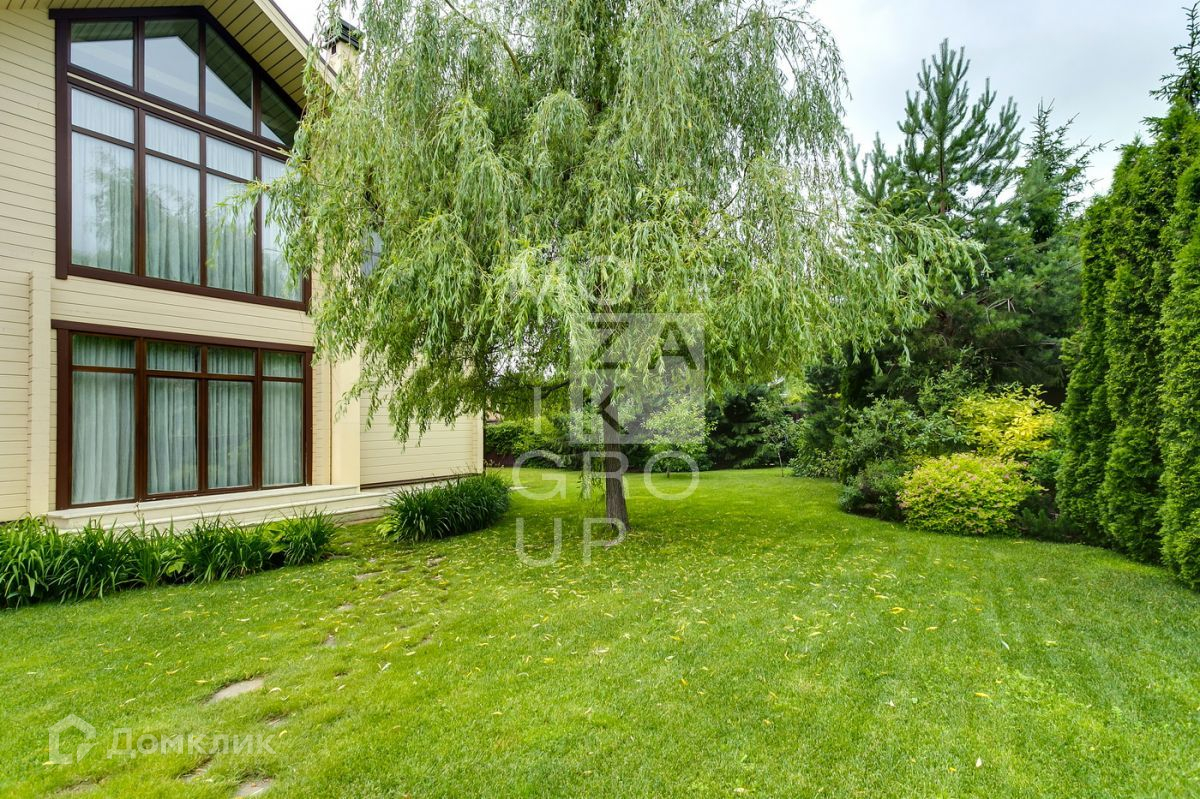ID 542469. КП Горки - 8. Дом 550 кв.м на участке 15 соток в охраняемом коттеджном поселке. Все центральные коммуникации. Расположение  дома в центральной, тихой части поселка. Ландшафтный дизайн с декоративными и плодовыми деревьями. Очень уютный дом из бруса, с панорамным остеклением в стиле современной классики.