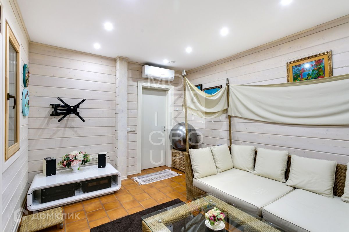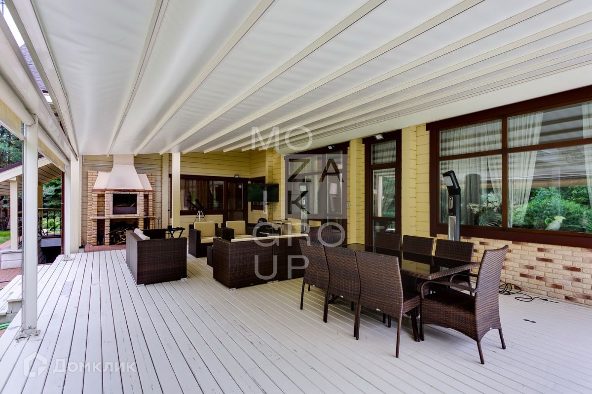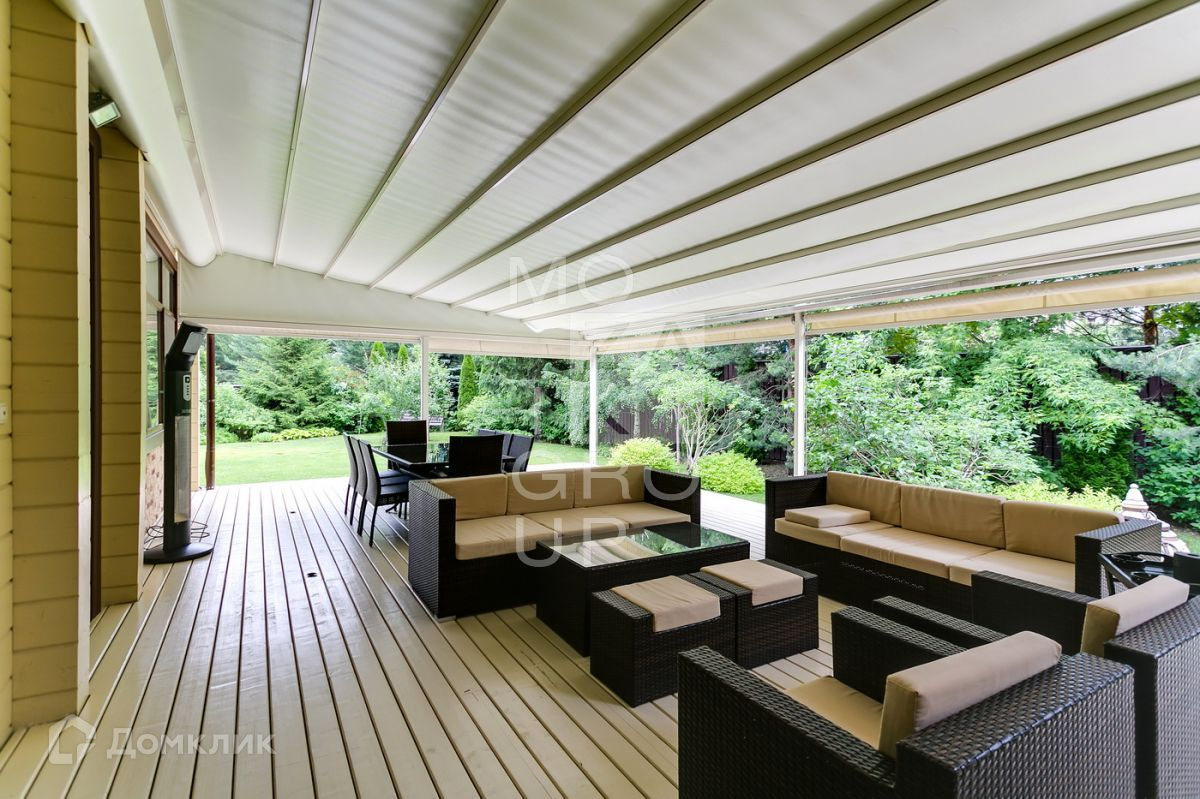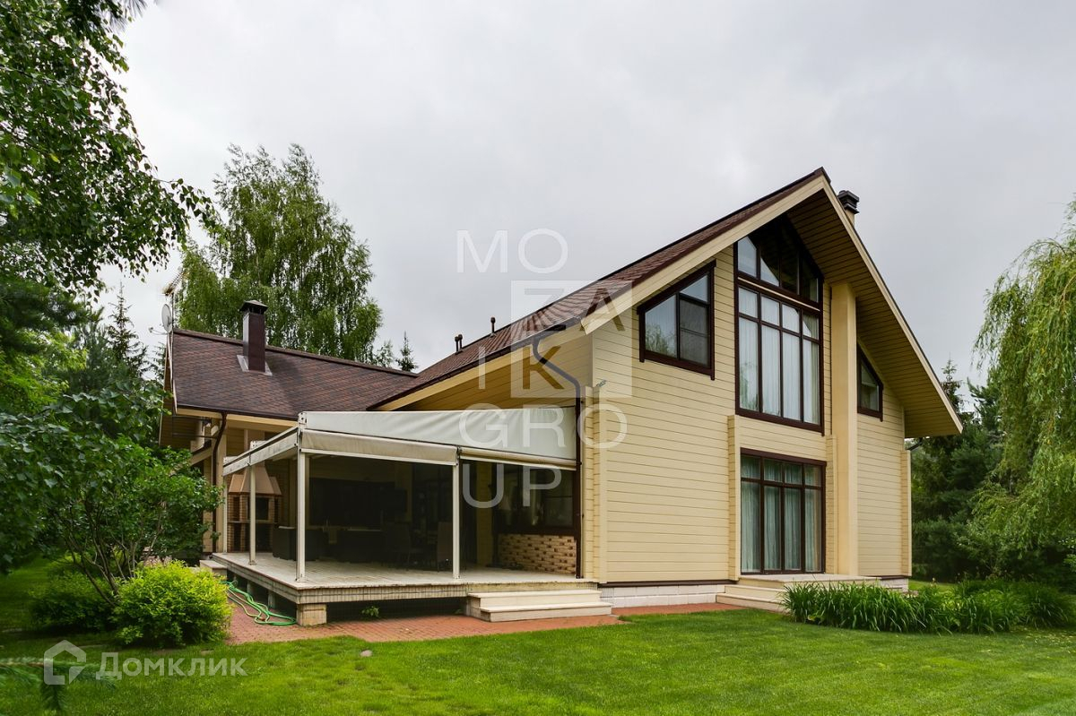 ID 542469. КП Горки - 8. Дом 550 кв.м на участке 15 соток в охраняемом коттеджном поселке. Все центральные коммуникации. Расположение  дома в центральной, тихой части поселка. Ландшафтный дизайн с декоративными и плодовыми деревьями. Очень уютный дом из бруса, с панорамным остеклением в стиле современной классики.