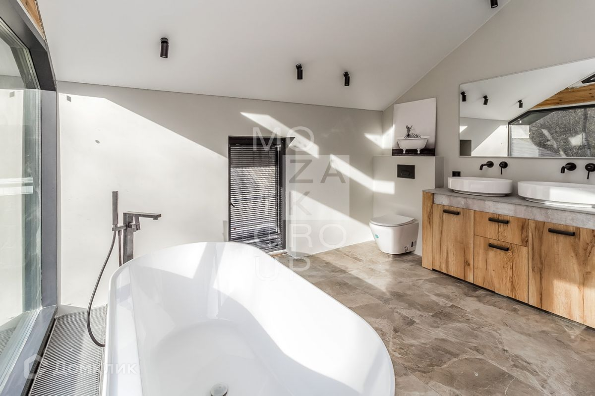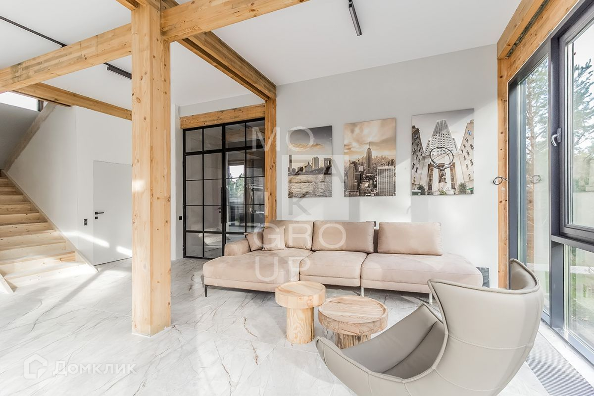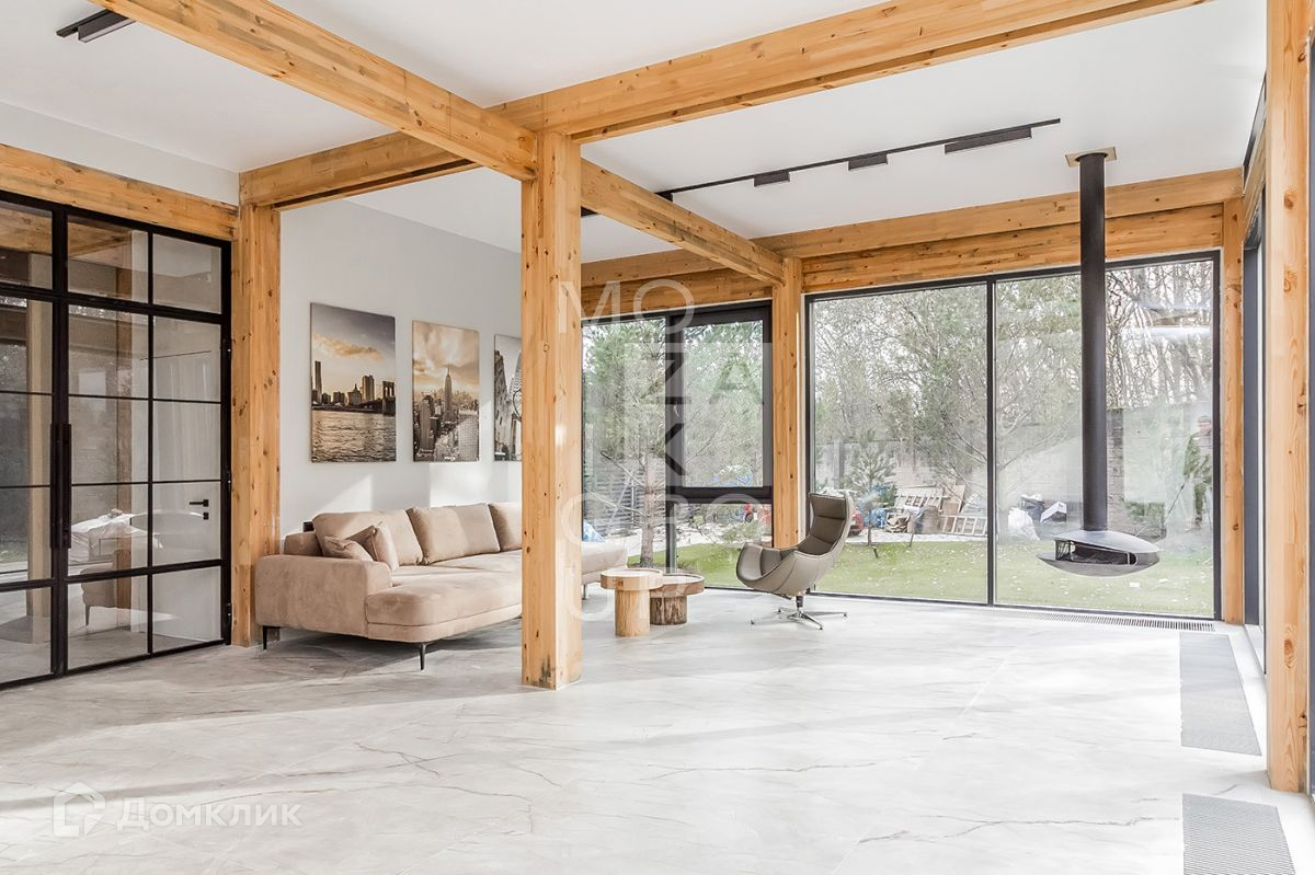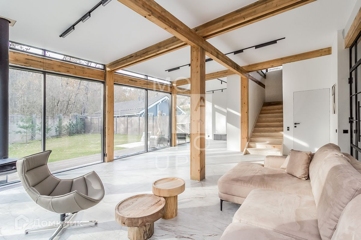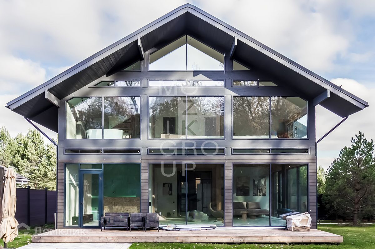 ID 542838. КП Заря. Новый современный дом 215 кв.м на участке 9,64 соток в охраняемом коттеджном поселке. В доме панорамное остекление с видом на лес, высокие потолки.