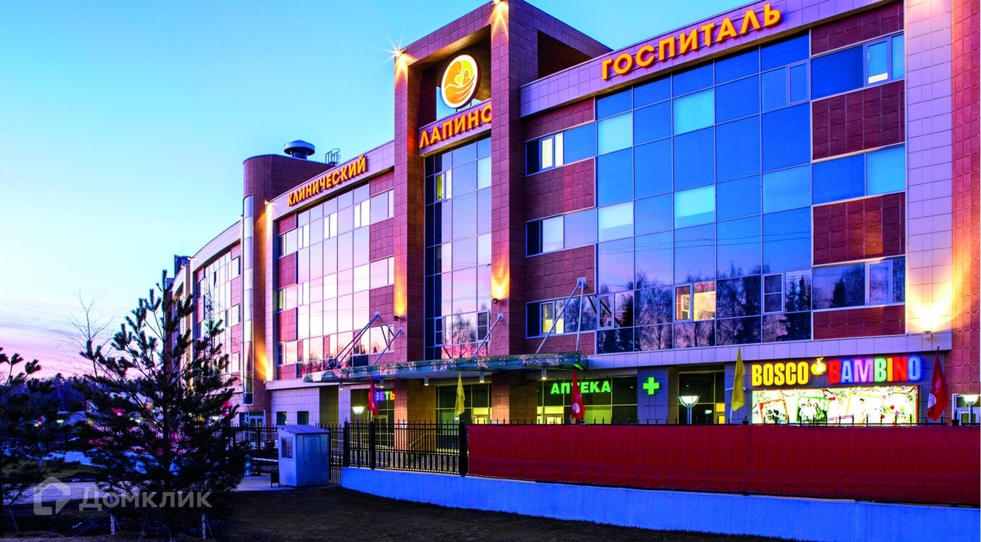 Крупнейший Госпиталь Лапино в 5 минутах езды.