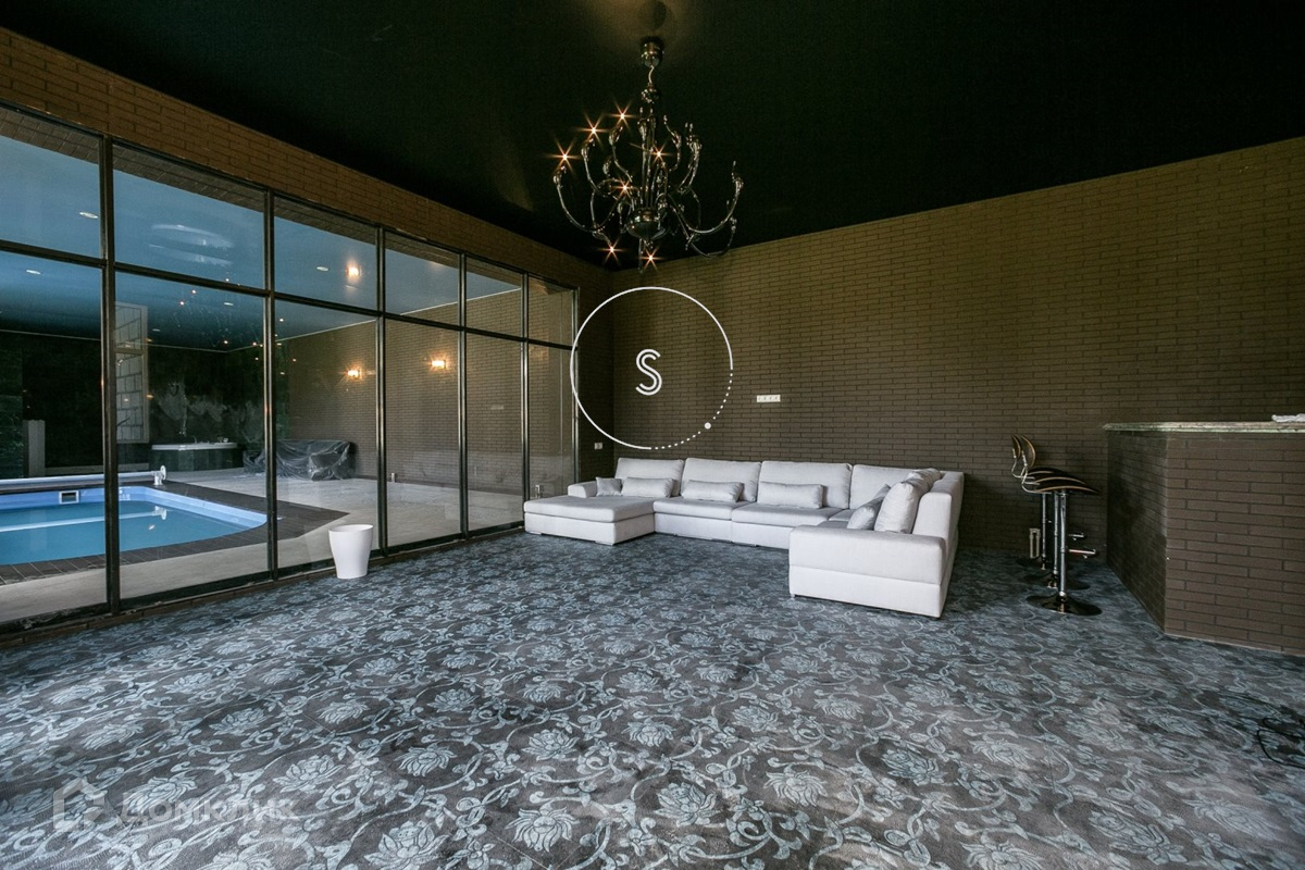 Коттеджный поселок Горки 8, Рублево-Успенское шоссе. Предлагается шикарный дом площадью 650 кв.м. на участке 23 соток. Интерьер в современном стиле. Отдельное здание для гаража с благоустроенными квартирами для персонала. Цоколь: бильярдная, профессиональная кухня, с/у, кладовая, котельная, 3 комнаты свободного назначения; 1 этаж: прихожая, гардеробная, гостевой с/у, гостиная с камином, кухня, столовая, библиотека, гостевая спальня с с/у и гардеробной; 2 этаж: основная спальня с гардеробной и ванной комнатой, 3 спальни с индивидуальными с/у и гардеробными. Лот 1359
