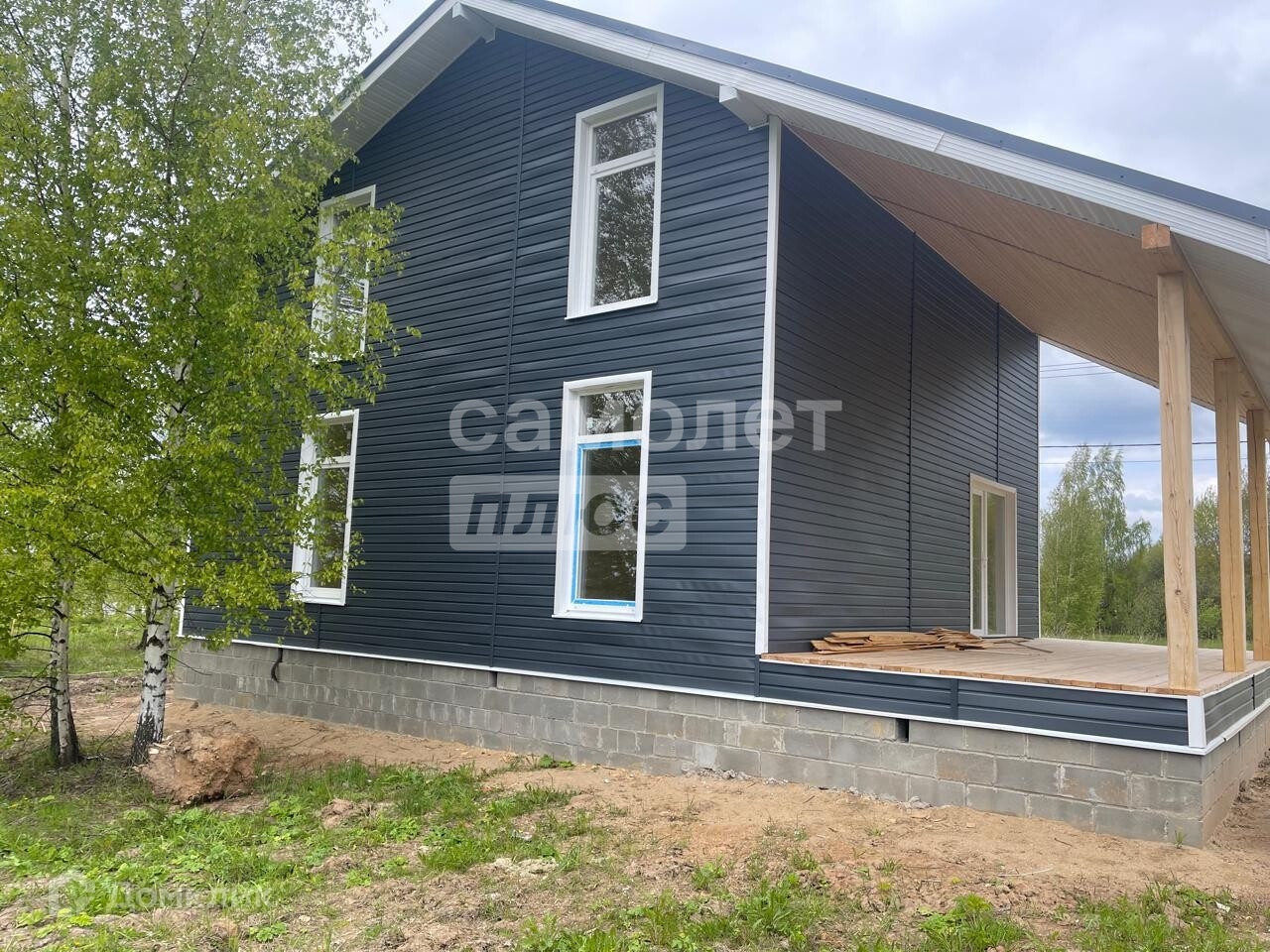 Характеристики дома:• Фундамент – бетонный ленточный, цоколь из бетонных блоков 400х200х200, ширина цоколя 400 мм.• Крыша – ондулин.• наружная отделка – сайдинг в цвете «графит»..• внутренняя отделка евровагонка.• окна 72 профиль в 3 стекла.• входная дверь железная утепленная с терморазрывом.