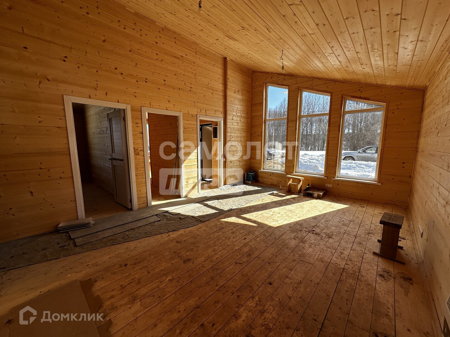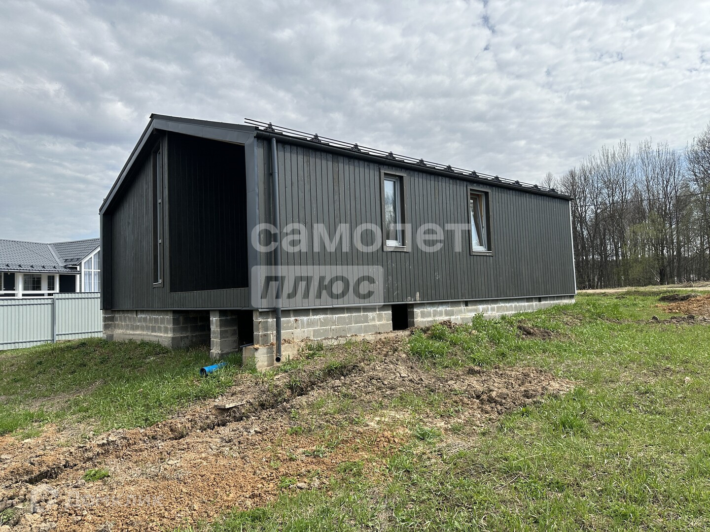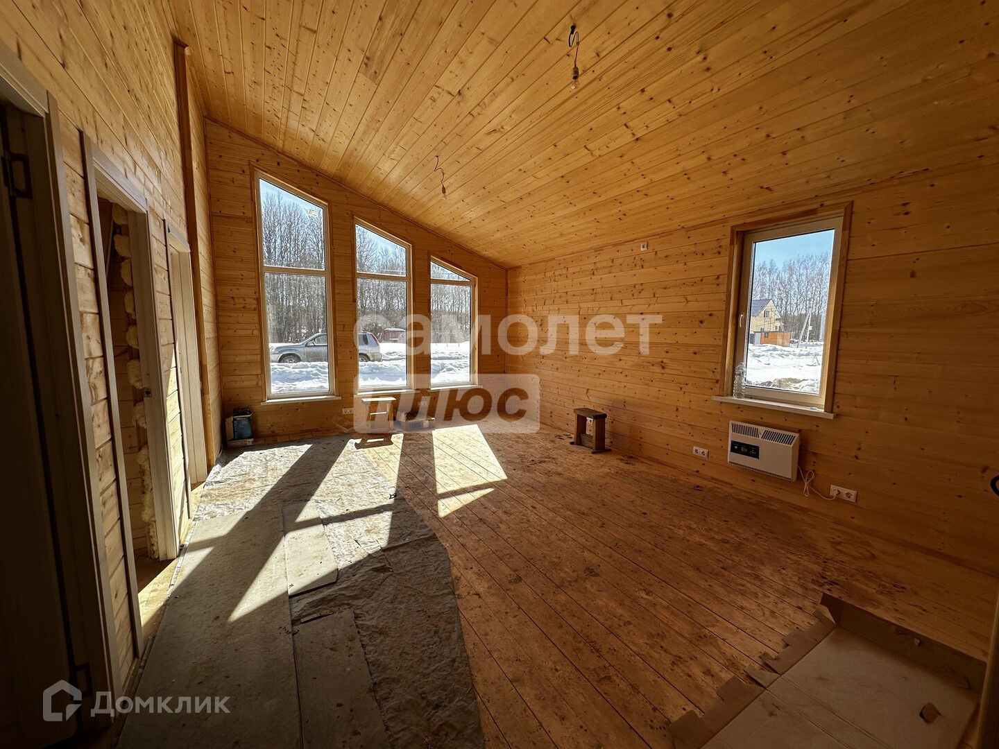 Общая площадь дома составляет 90 квадратных метров. В доме три спальни и кухня-гостиная. Есть веранда с видом на лес. Соседей с лесной стороны не будет.