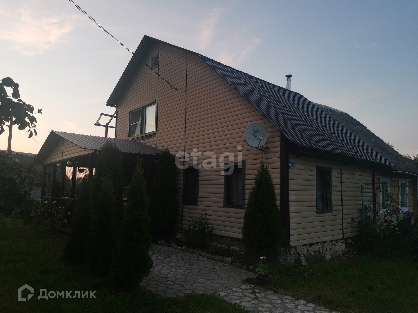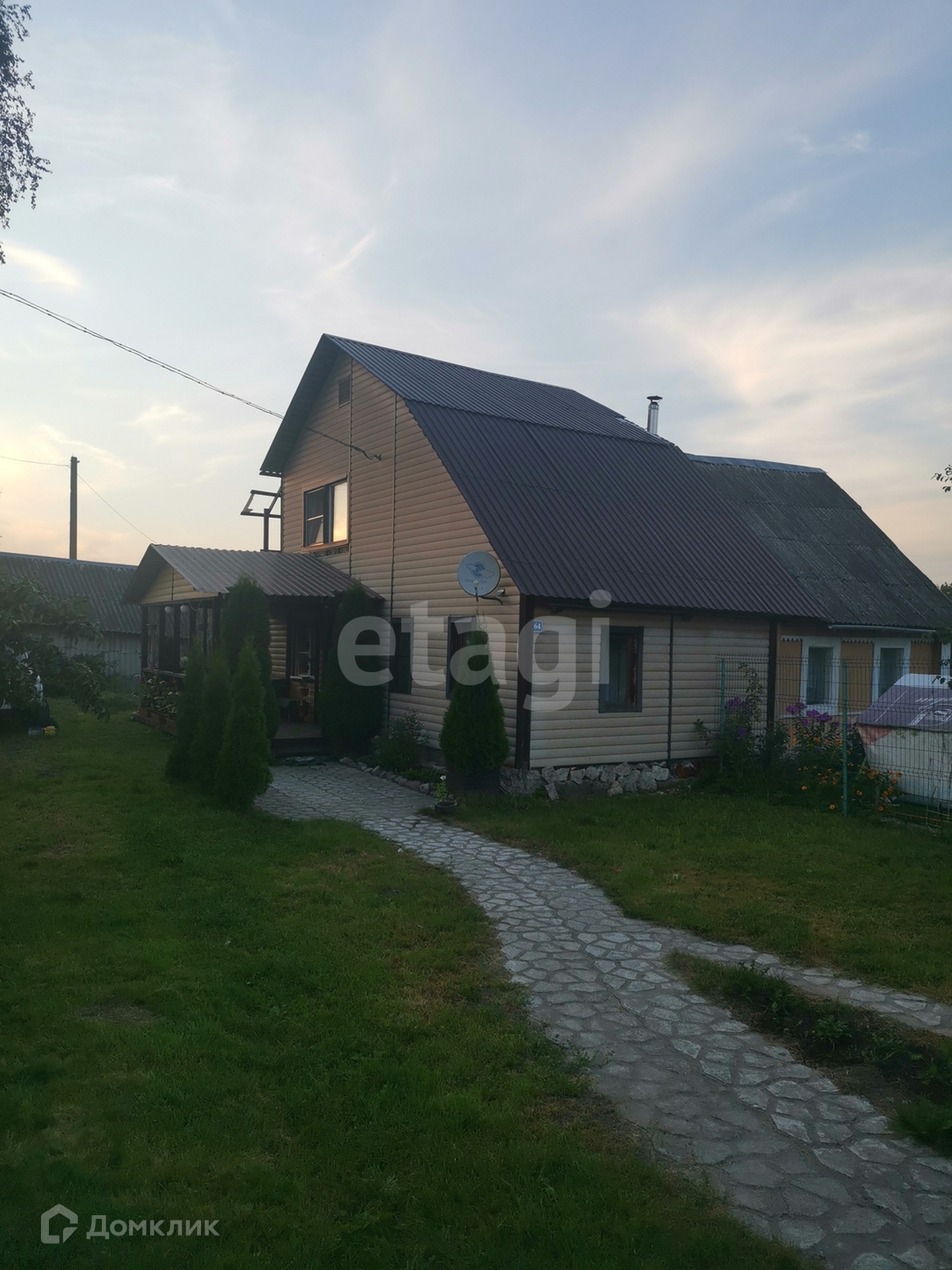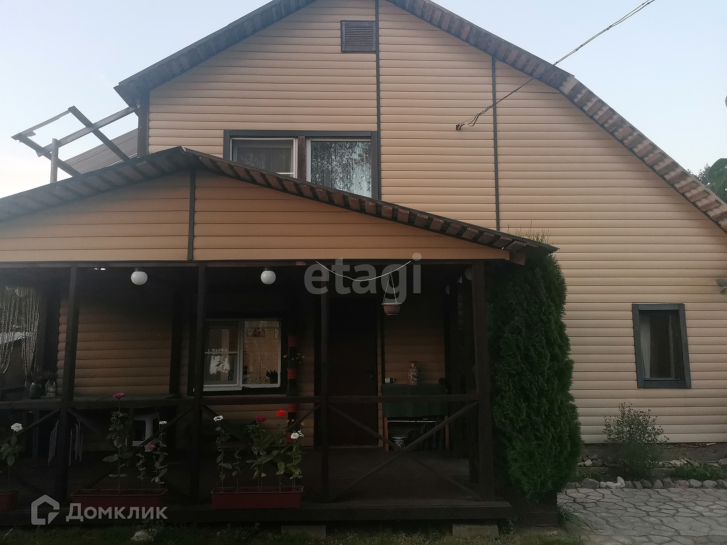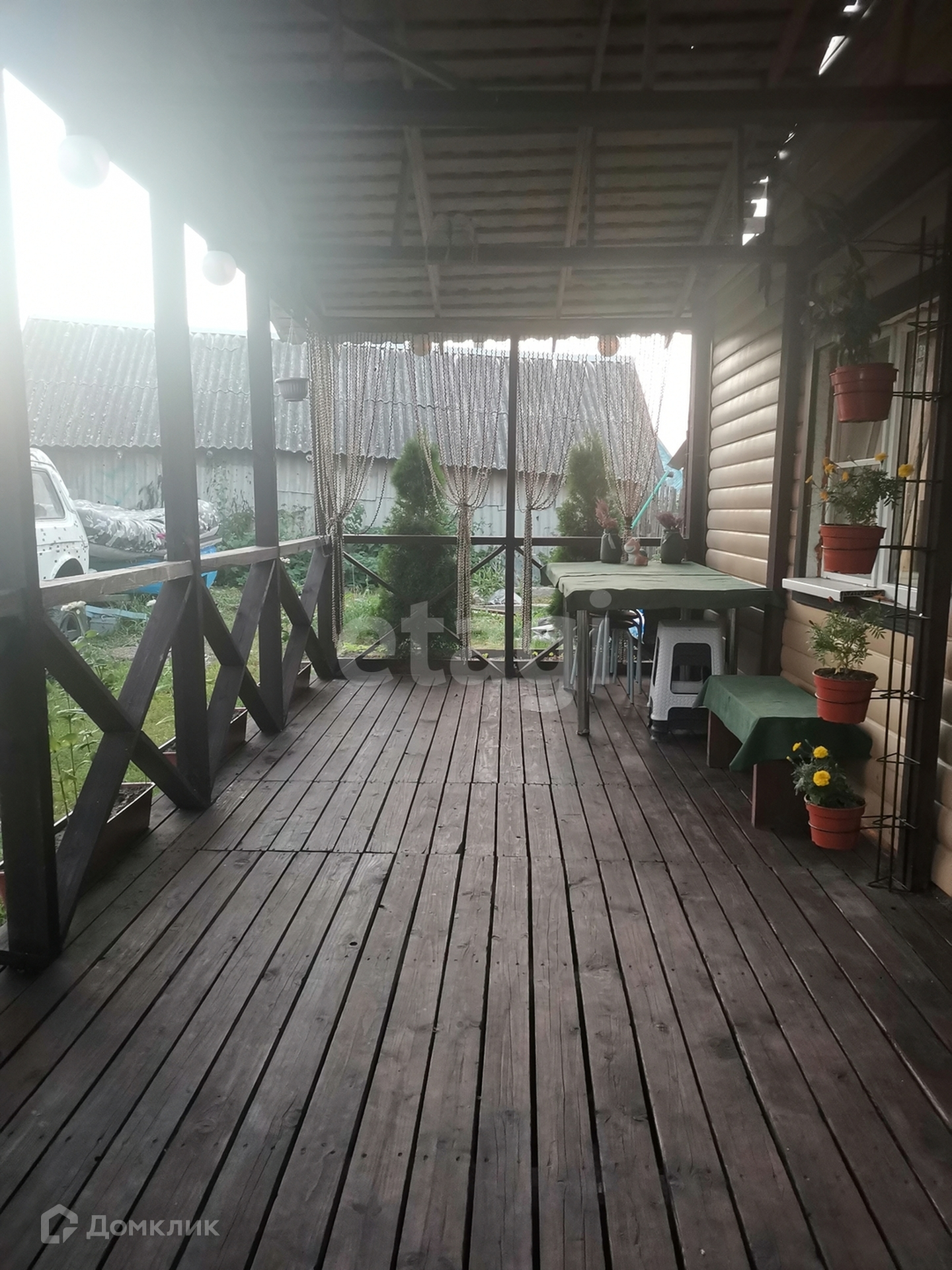 Перед входом в дом открытая терраса. На участке около дома есть просторный вольер для собаки, забор по периметру.