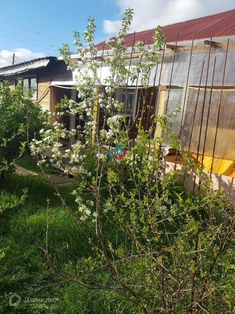 На участке 736 кв.м. расположен дом из бруса и пристройка 10,9 кв.м., баня 2005 года постройки и два сарая, а так же две теплицы. На участке растут кусты сирени, черемухи, смородины, яблони, сливы.