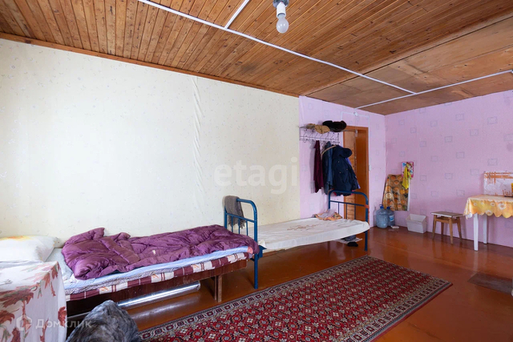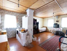 На первом этаже дачи одна большая комната и веранда. Второй этаж не обустроен. Дача стоит на деревянных сваях, утеплена и обшита вагонкой. Пристройка - на бетонном основании. Крыша покрыта рубероидом и шифером. Теплая и уютная, можно жить зимой.