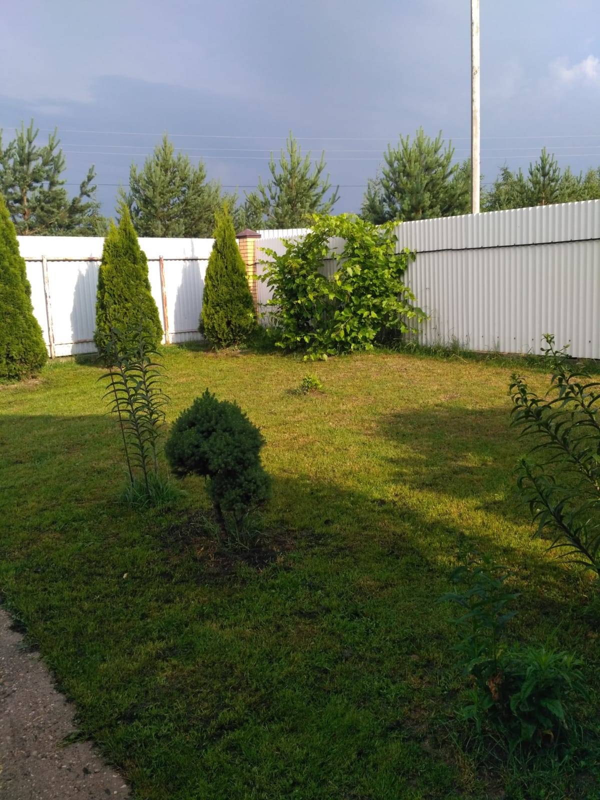 Высокий участок, площадью 15 соток. Асфальтированный подъезд, автоматические откатные ворота. Участок засеян газоном, есть бытовка для хранения садового инвентаря. Соседи живут постоянно. По периметру участка забор из профнастила на ленточном фундаменте.