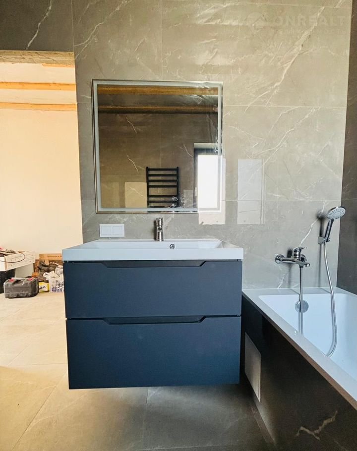 Штукатурка, шпаклёвка, электрика, плитка, водоснабжение, дом отапливается.