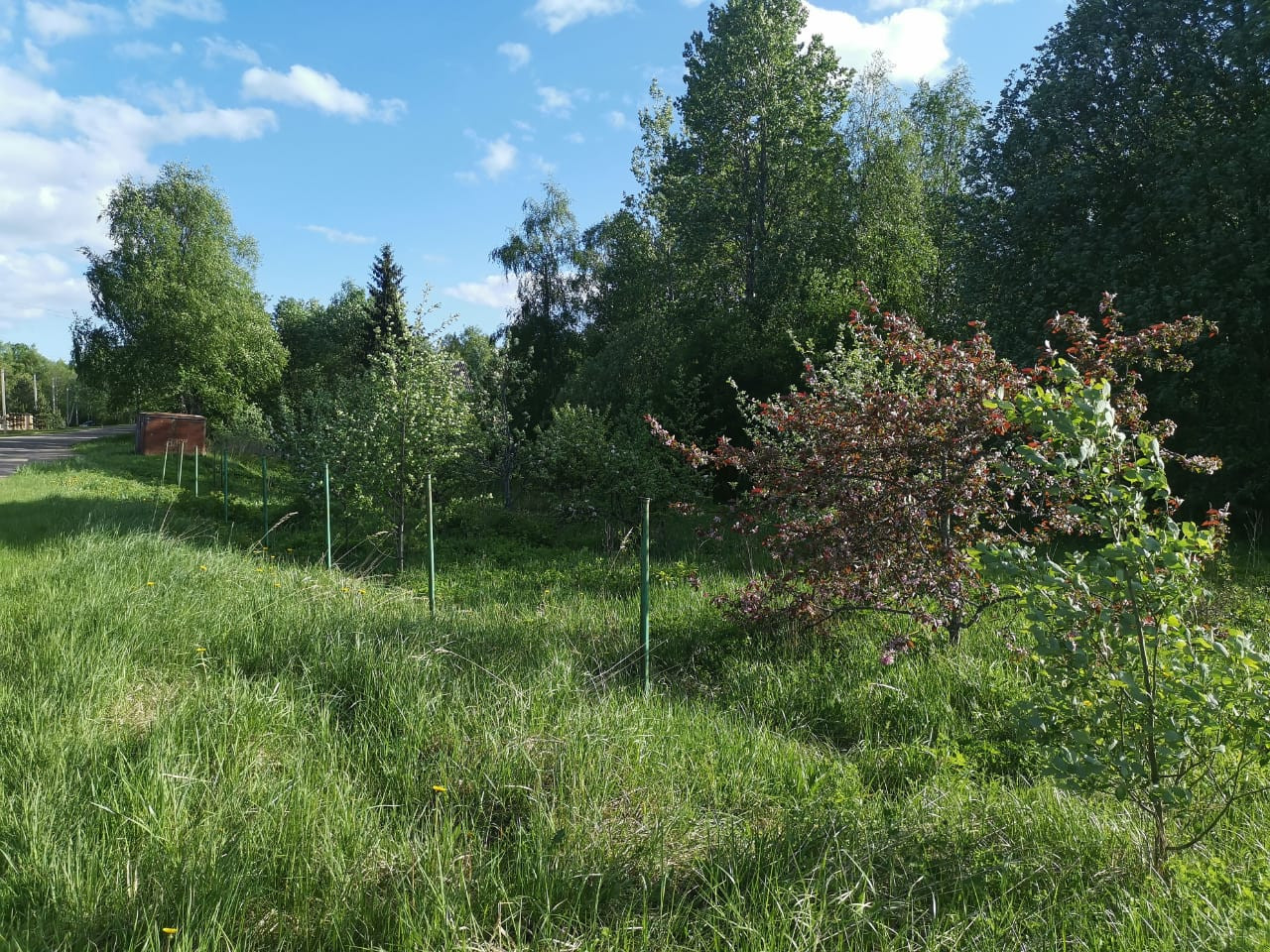 На участке плодовые деревья сливы, груши, яблони.
