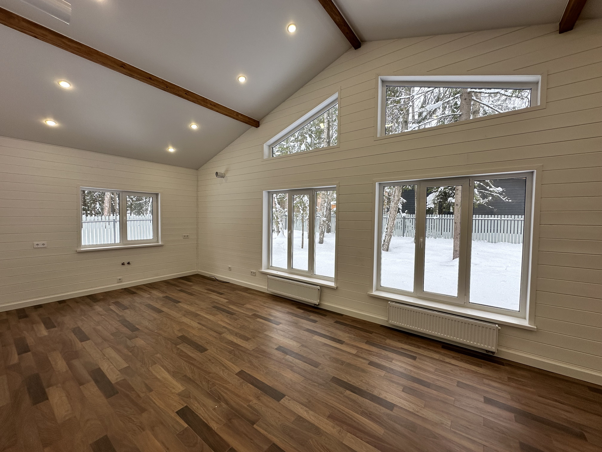 Дом каркасный, из сухого строганного дерева, построен по проекту. Фундамент - монолитная армированная плита; Крыша и фасад вентилируемые; Вентиляция в котельной, санузлах и кухне; установлена водосточная система . Внешняя отделка дома - фиброцементный сайдинг DECOVER с декорирующими элементами из лиственницы покрашенной маслом; Декоративная подсветка дома; Утепление дома - стены - 200мм Knauf / межкомнатные - 150мм, пол - 50мм. Пеноплекс, потолки - 250мм Knauf; Мембраны Grand Line; Окна двухкамерные стеклопакеты REHAU 70 профиль с ламинацией. Крыша - мягкая кровля; внутренняя отделка - полы керамогранит / ламинат; Потолок - натяжной. На крыльце и террасе - террасная доска.