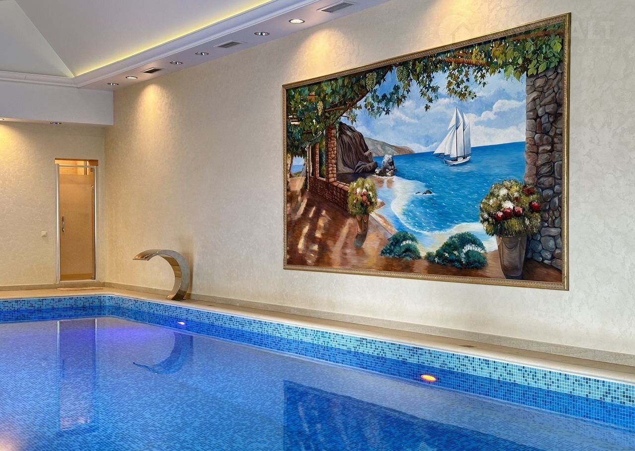 Дом с бассейном: 378 м2 м2, 2 этажа, подвальное помещение/винный погреб