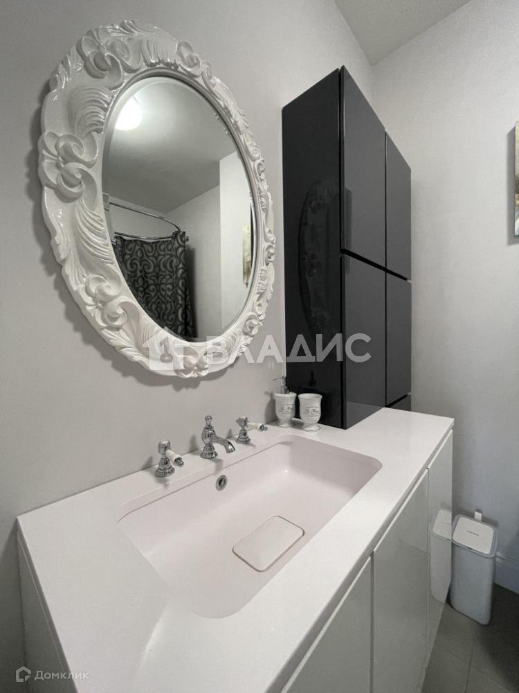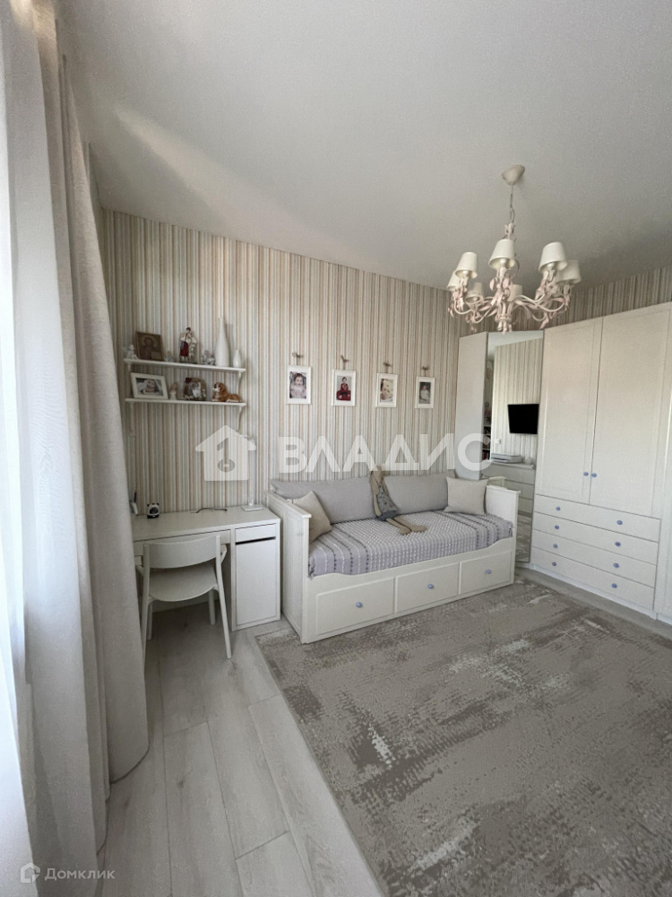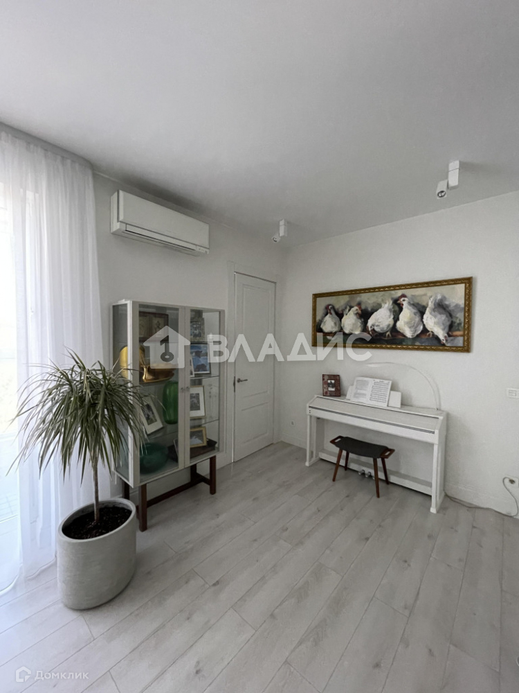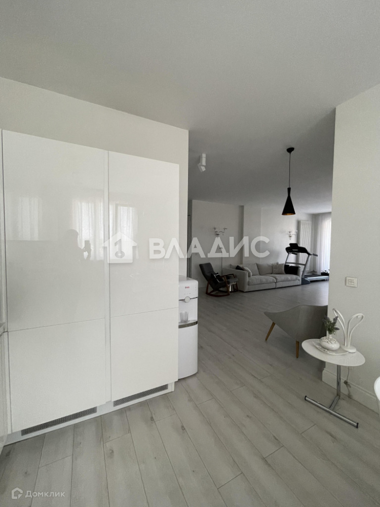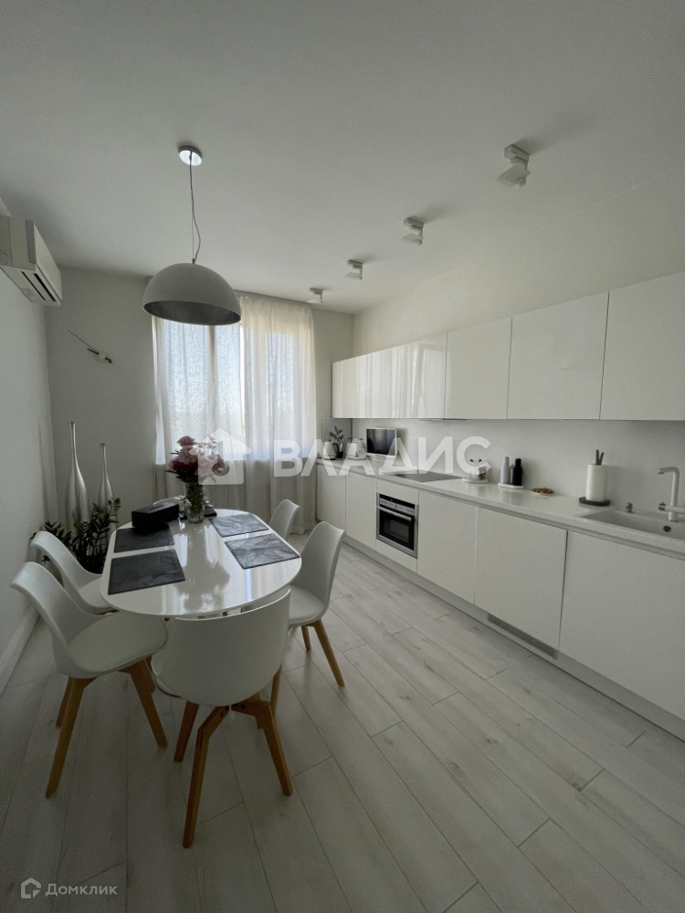 Планировка квартиры включает просторную кухню, гостиную, две спальни, санузел, гардеробную и теплую лоджию с панорамным остеклением. Отделка выполнена из высококачественных материалов. Техника на кухне Neff. Кондиционеры установлены в гостиной и кухонной зоне.