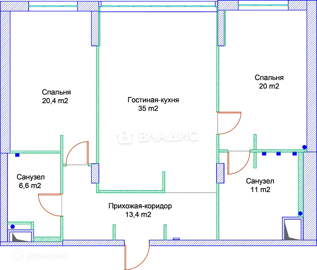 6. Высота потолков 3 метра.