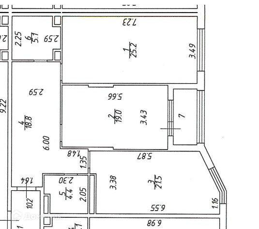 Жилая площадь 46.7 м2