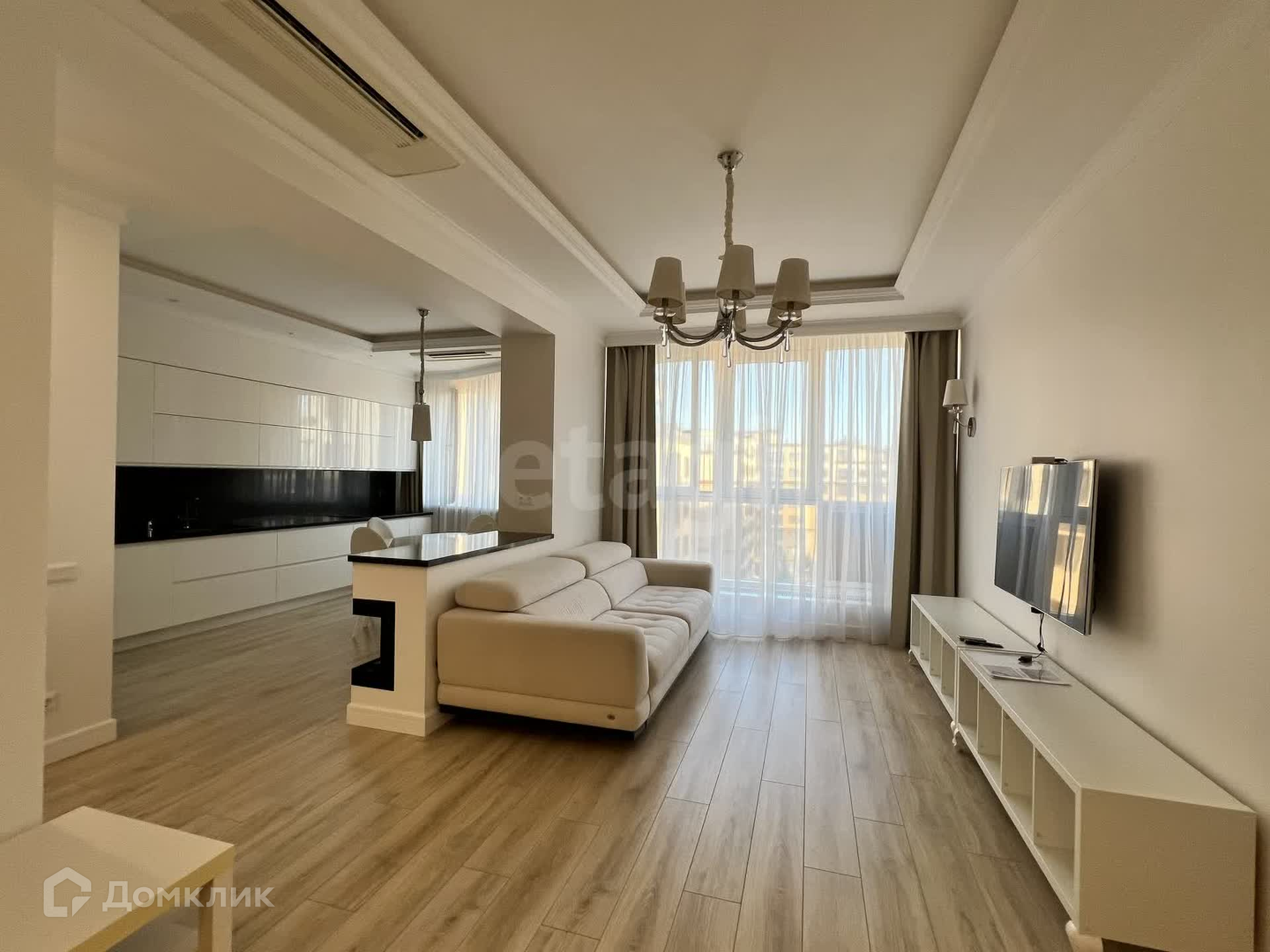 В квартире выполнен евроремонт с использованием высококачественных материалов. Просторная Спальня-гостиная, встроенные шкафы в спальне и коридоре), встроенная кухня ( посудомойка, духовой шкаф, индукционная варочная панель, микроволновка), совмещенный с/у (душевая кабина, стиральная и сушильная машины). Техника Bosh. Кухню и гостиную разграничивает встроенный биокамин. В кухне и гостиной потолочные кондиционеры, теплые электрические полы в кухне, коридоре и с/у.