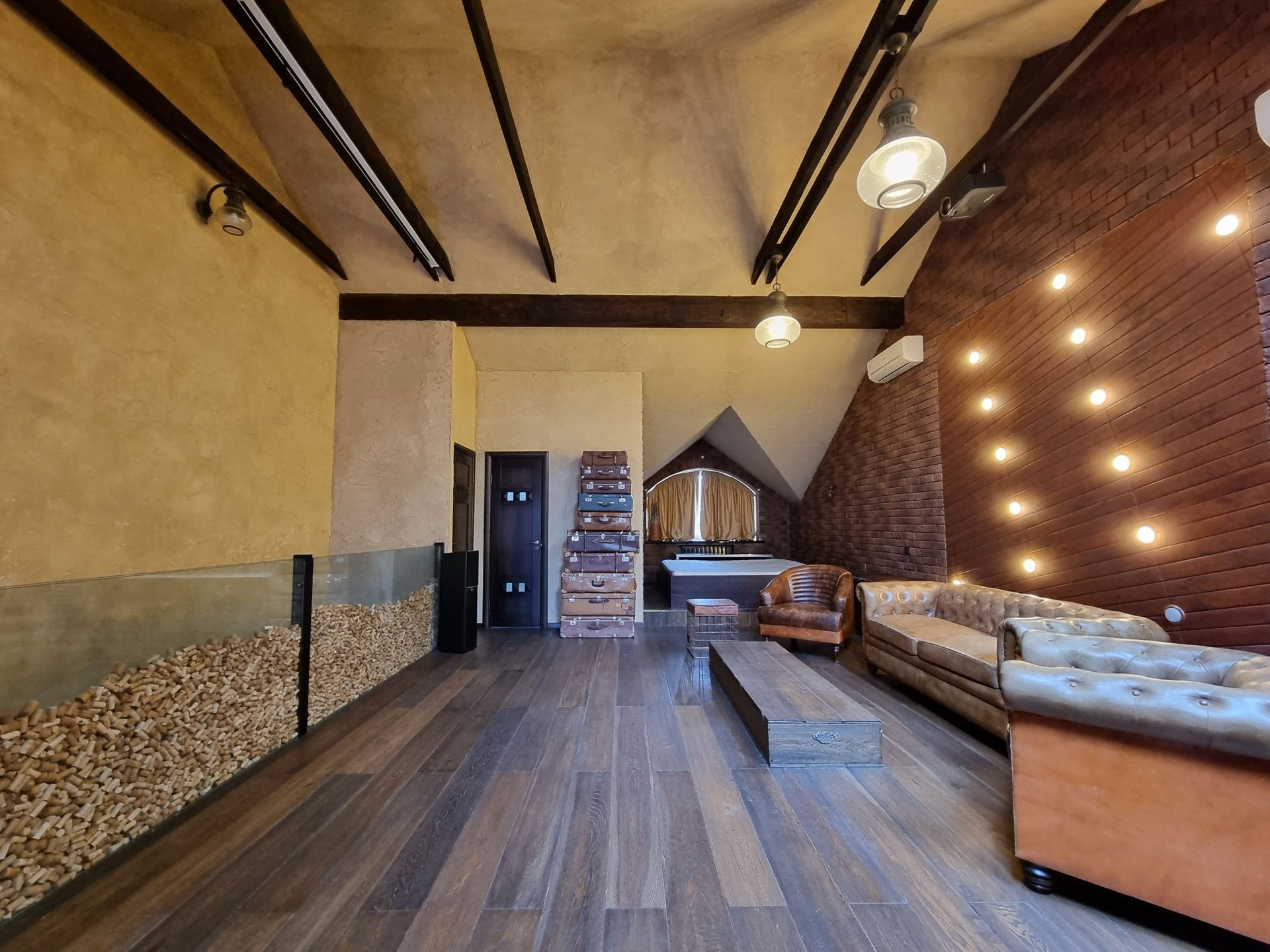 3 этаж - просторная открытая мансардная зона мастер-спальни с домашним кинотеатром, зоной отдыха и библиотекой; санузел с душевой кабиной, гардеробная.