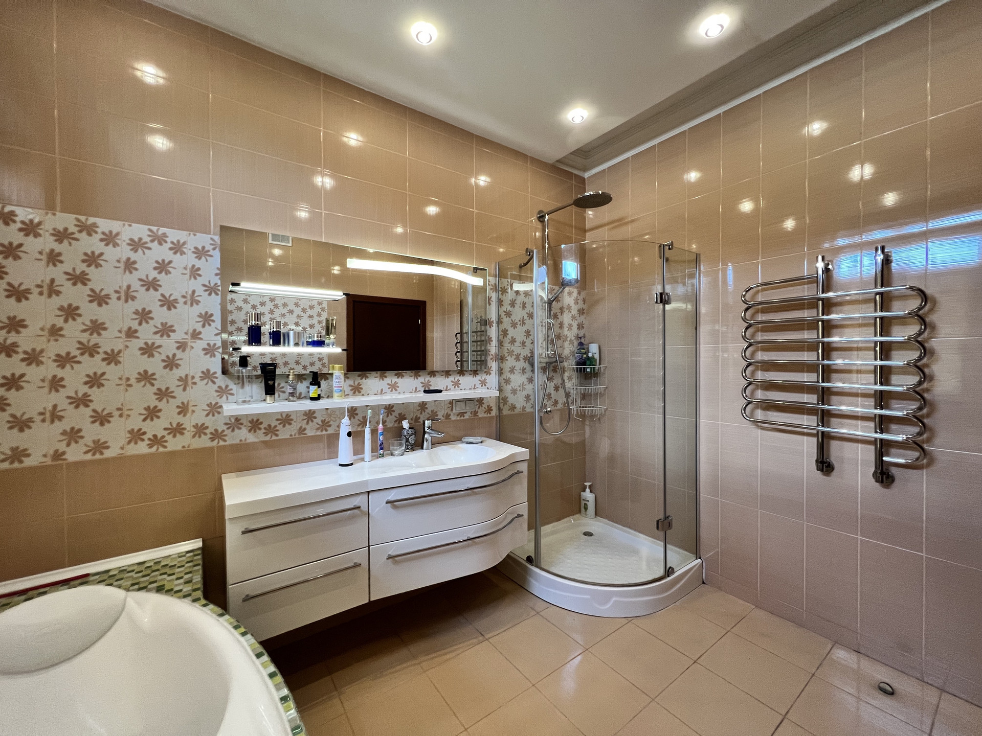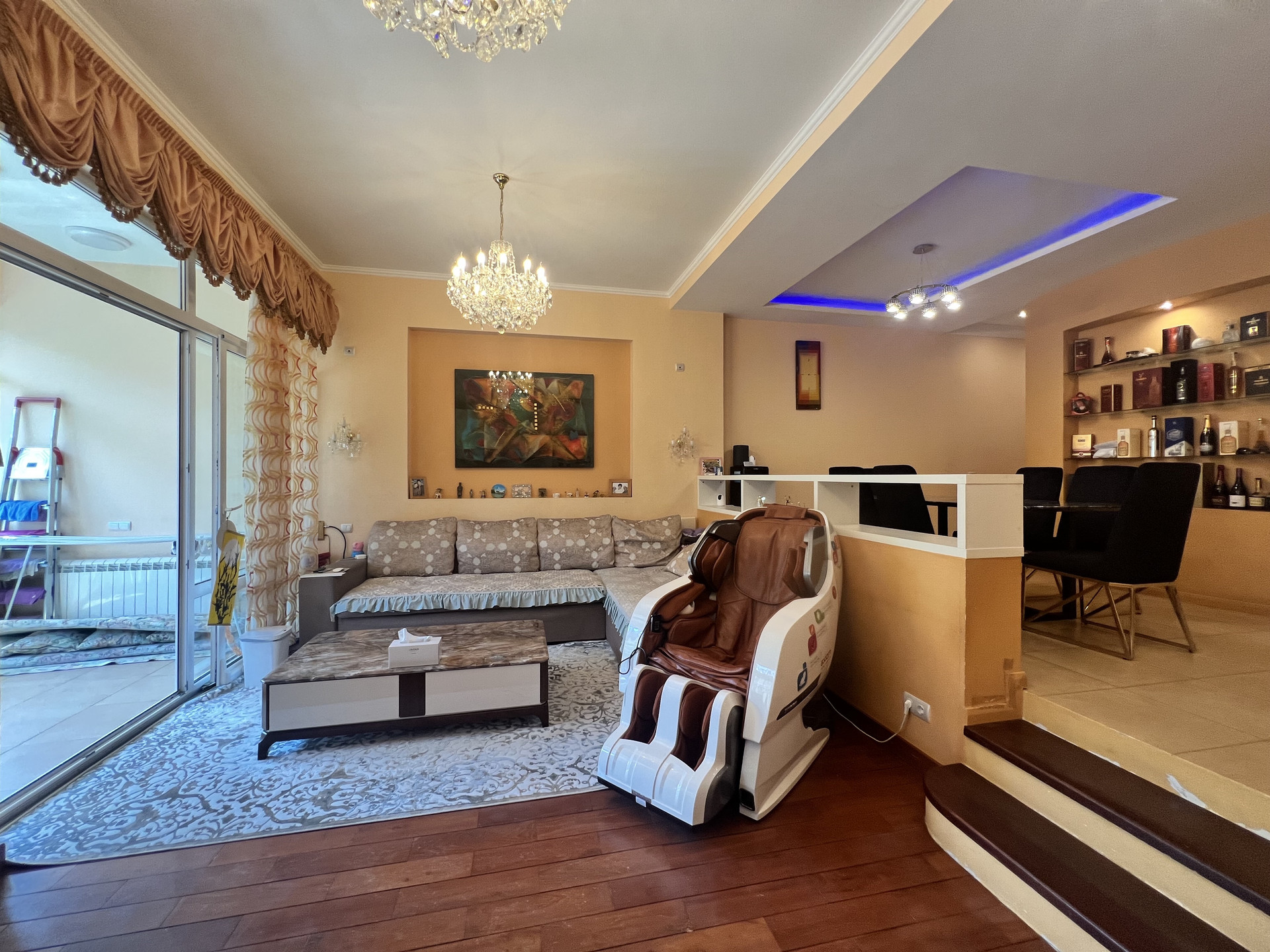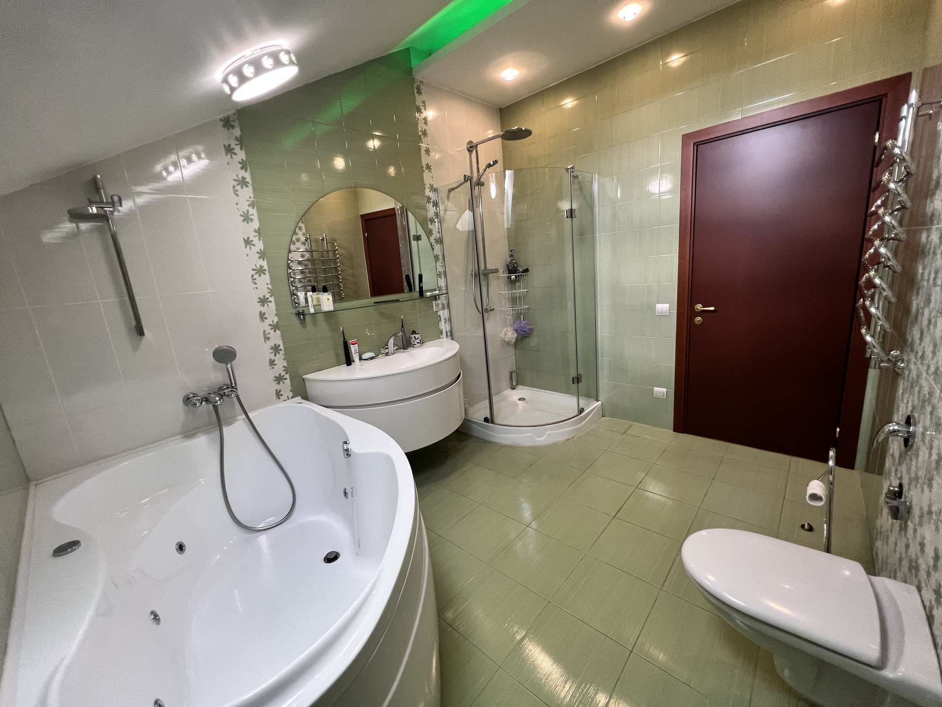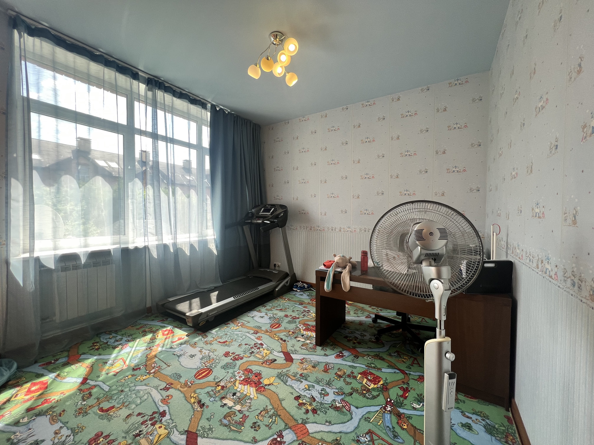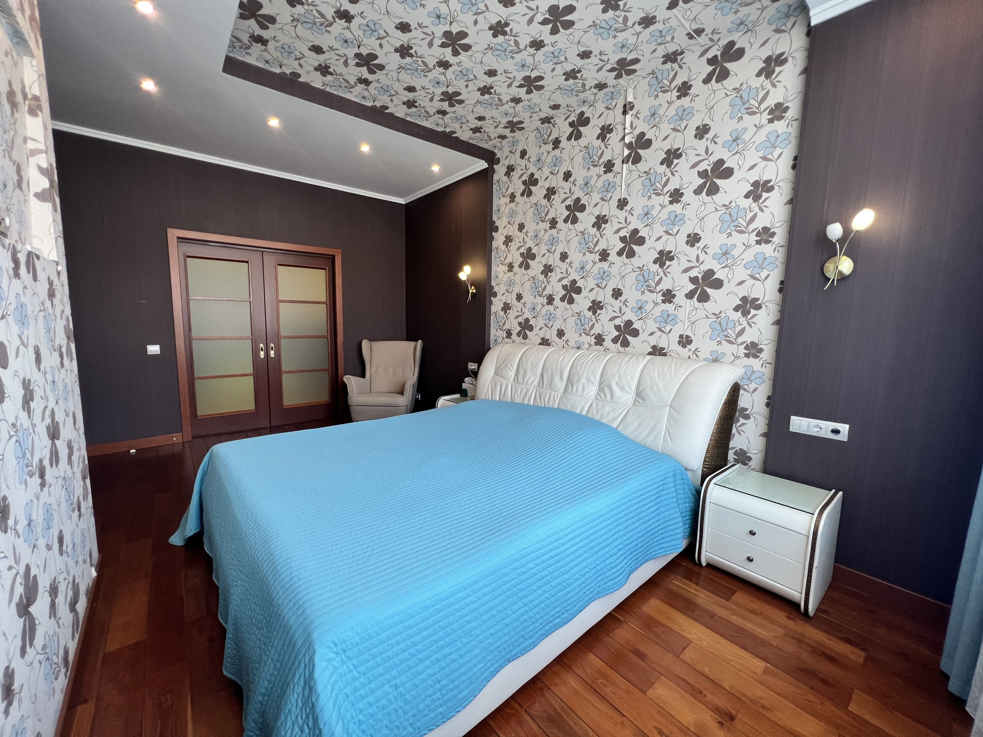 Ремонт: шумоизоляция стен, на полу во всех жилых комнатах и коридорах - массив дерева (бамбук), лестница (дуб), на 1 этаже керамическая плитка (теплый пол, водяное отопление), в с/у (электроподогрев). Установлен 1 кондиционер - в хозяйской спальне.