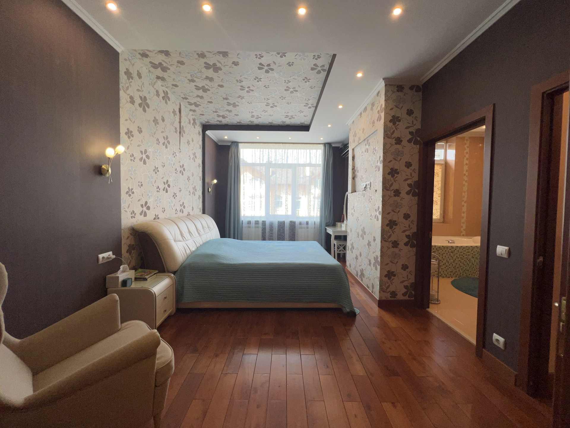 2-этаж: 1 спальня хозяйская со своей гардеробной и санузлом, совмещенным с ванной и душевой, и еще 1 комната свободного назначения.
