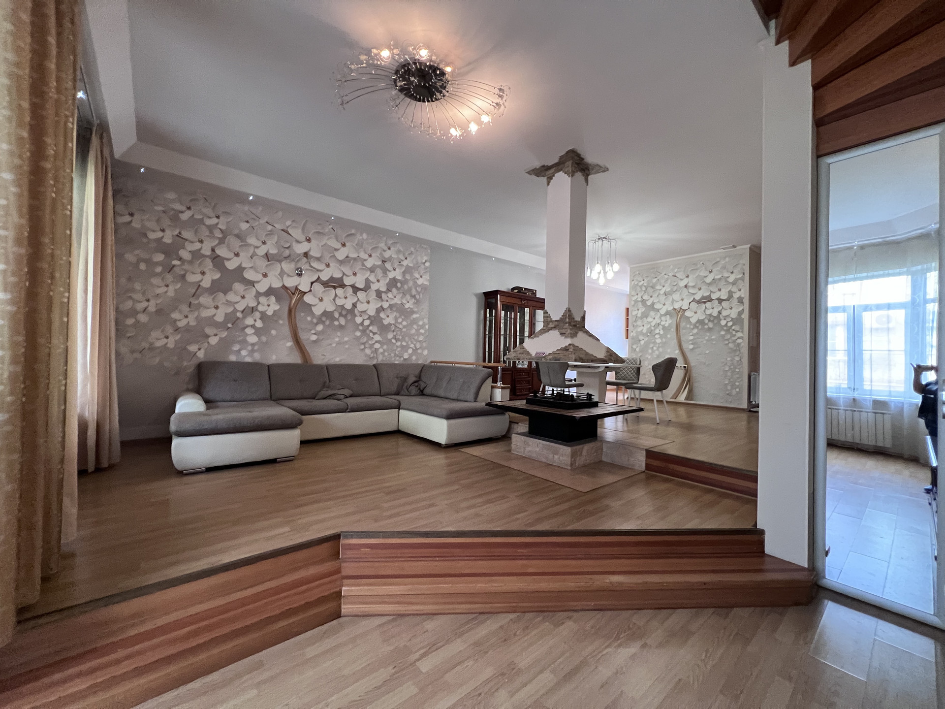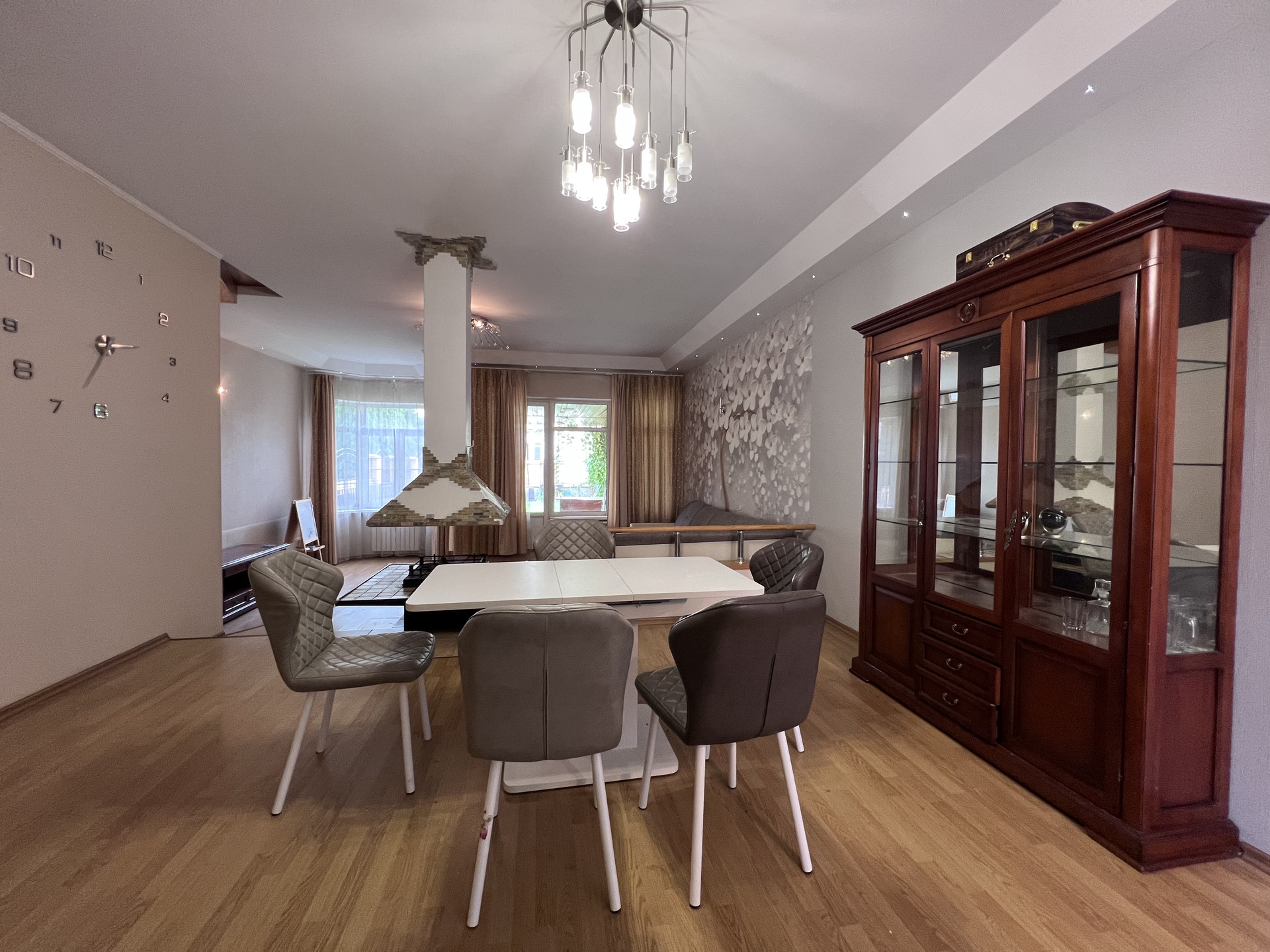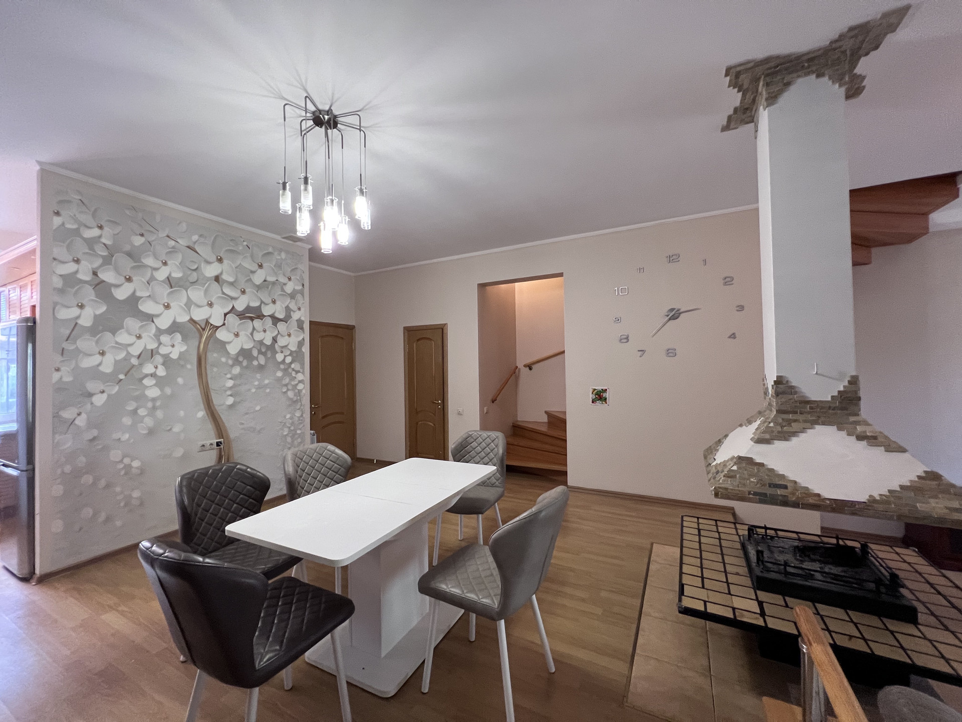 1 ЭТАЖ: тамбур со встроенным шкафом, котельная, 1 санузел, встроенная кухня со всей бытовой техникой, включая посудомоечную машину - обеденная зона-гостиная с камином (с опцией гриля), кладовка.