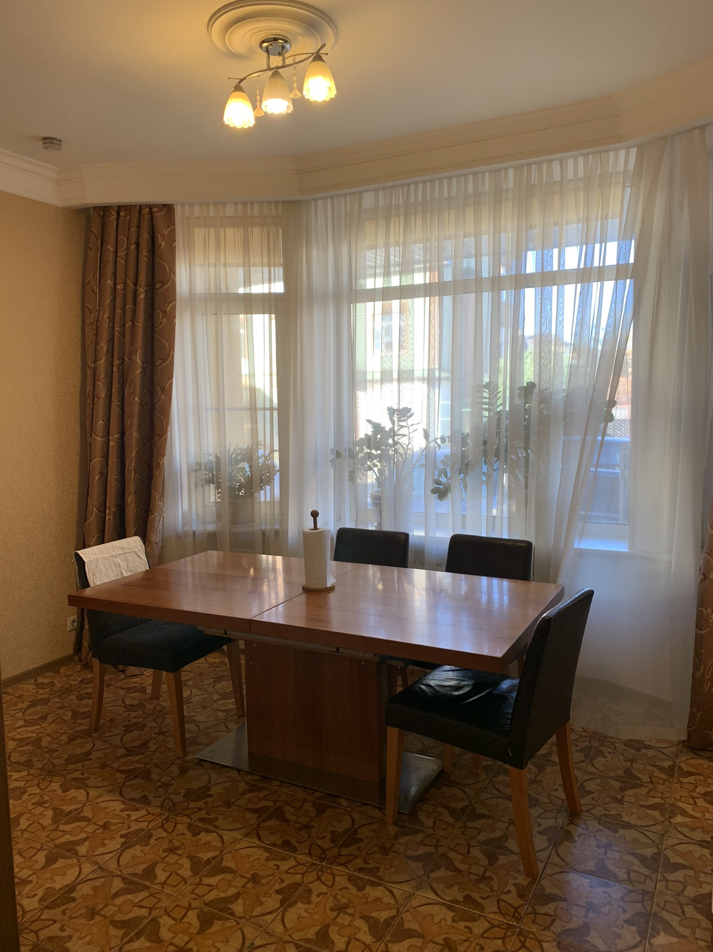 – просторная столовая зона с прилегающей кухней, встроенным шкафом и всей необходимой бытовой техникой;