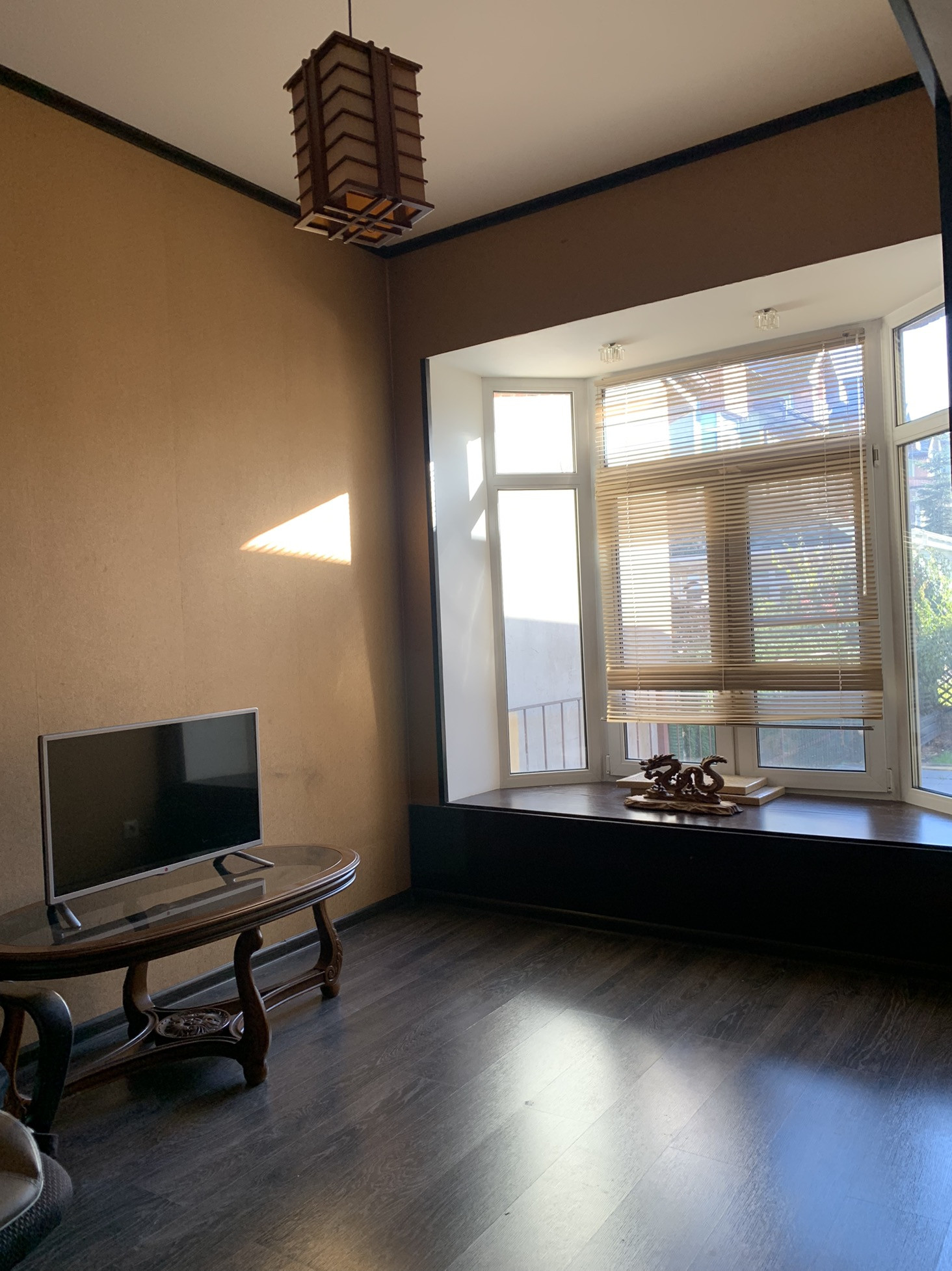 - гостиная с эркером и тремя зонами отдыха, выход во внутренний двор через пристройку.