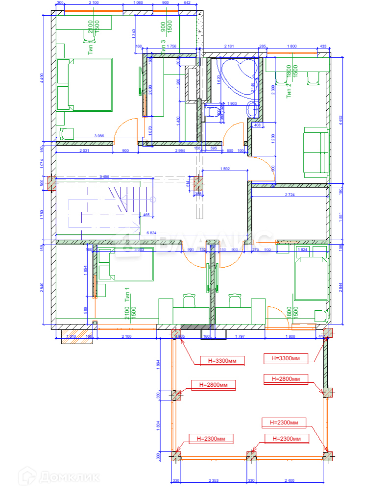 на 2-м этаже: 3 спальни с гардеробными, гостевая спальня, санузел, ванная комната