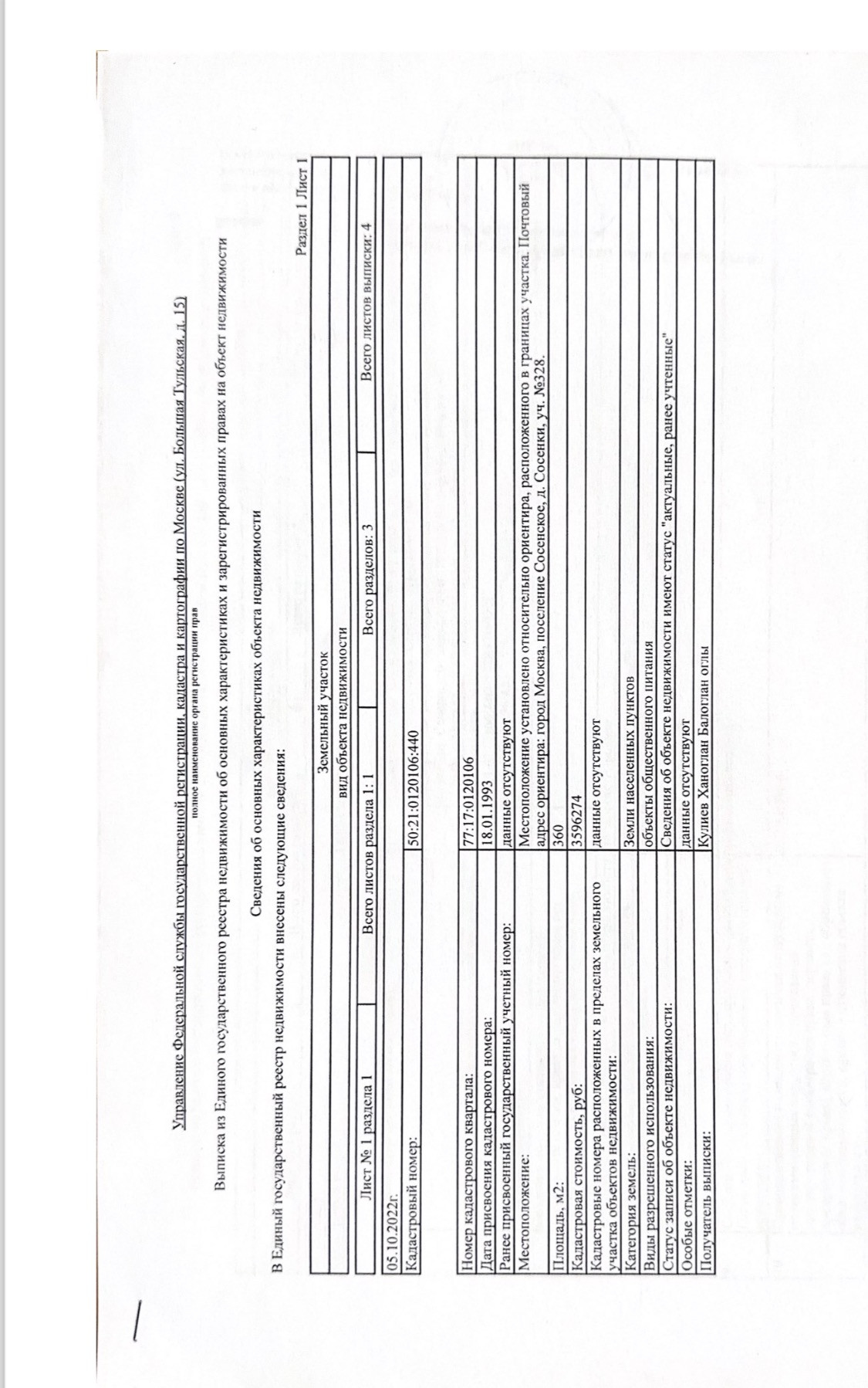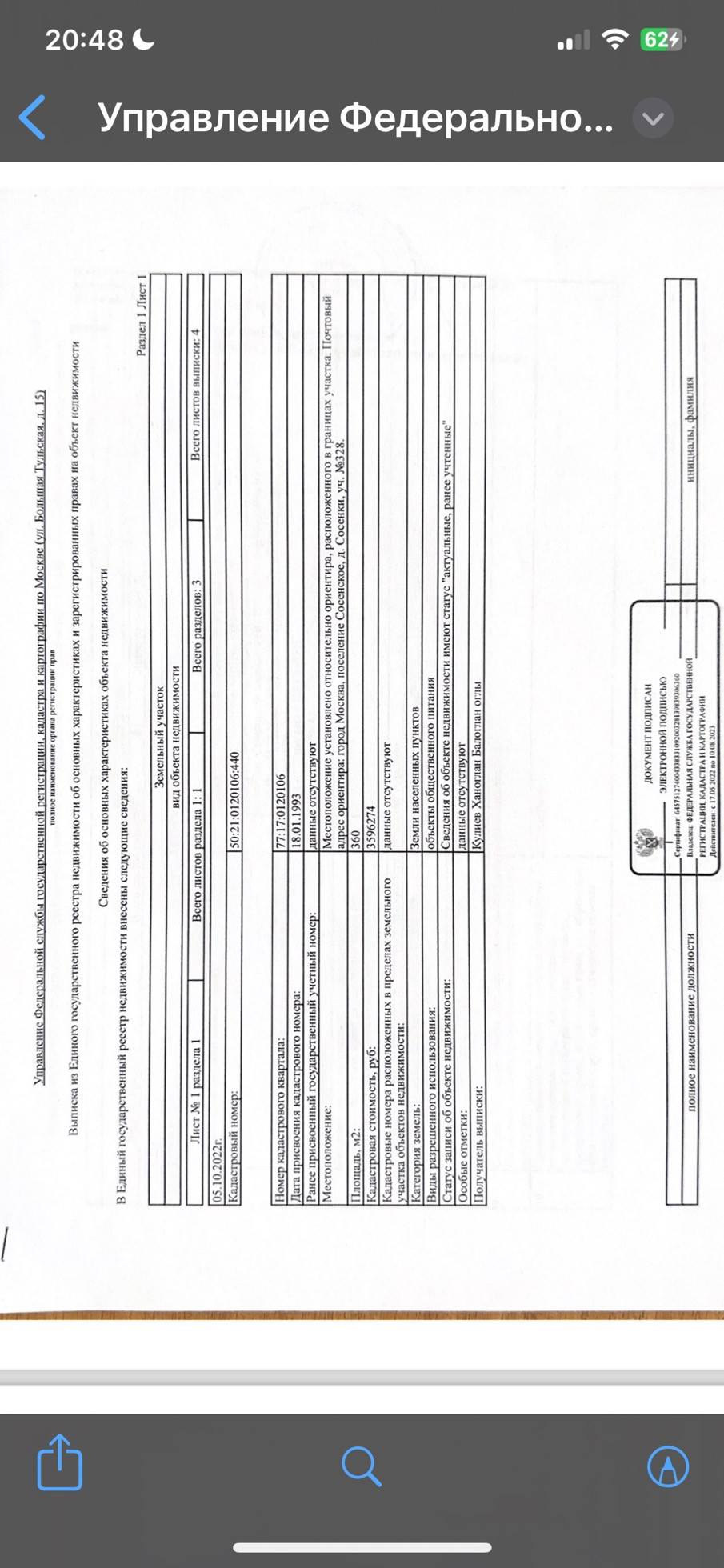 Площадь участка 360 сот.