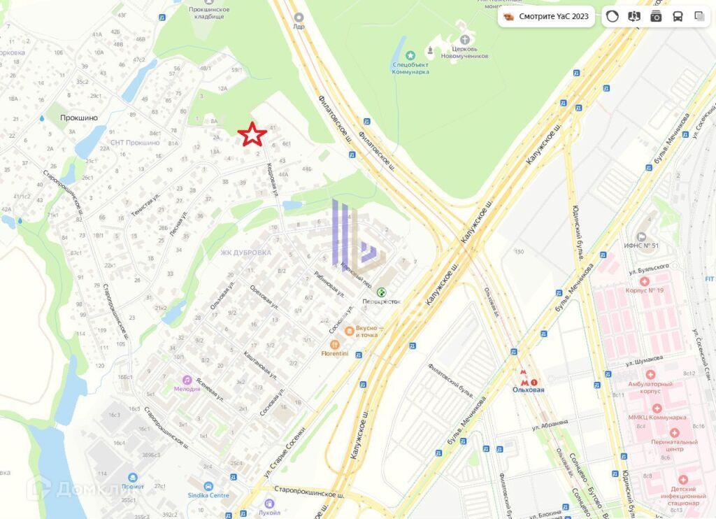 Транспортная доступность участка отличная, с удобным расположением от метро "Ольховая" и прямым выездом на Калужское шоссе.