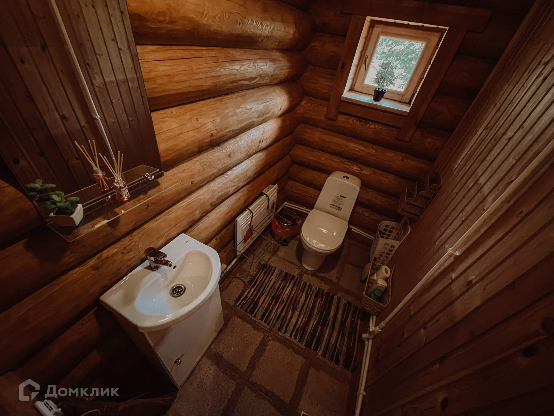 Дом снабжается водой через колодец и скважину, нагрев через бойлер. Присутствует нагрев водопроводных труб, что позволяет пользоваться ими зимой. Отопление печное и электрическое, дрова в комплекте. Печь в доме является сдвоенной с раздельными дымоходами и раздельными топками: камин и каменка для парной. Печь сложена вручную высокопрофессиональным мастером из кирпича марки Terca. Тепло в парной держится два-три дня. Вместимость одновременно примерно 5-6 человек. Материал полков в парной - ольха. По двум сторонам периметра дом окружен террасой с видом на залив с одной стороны и с выходом к купели с другой стороны. Из летней спальни панорамное окно с великолепным видом на залив и небо, из зимней мансардное окно с видом на небо. Два окна из кухни-гостиной выходят на залив.