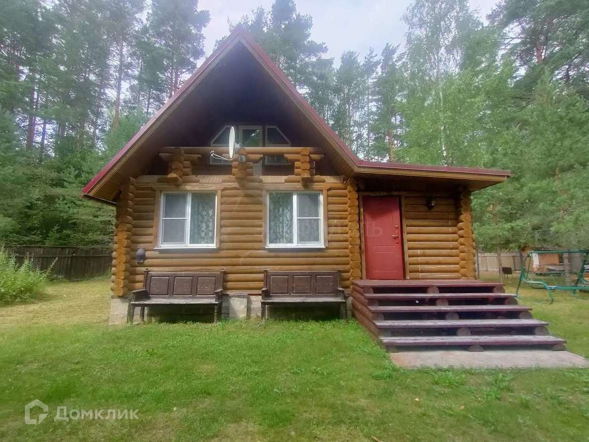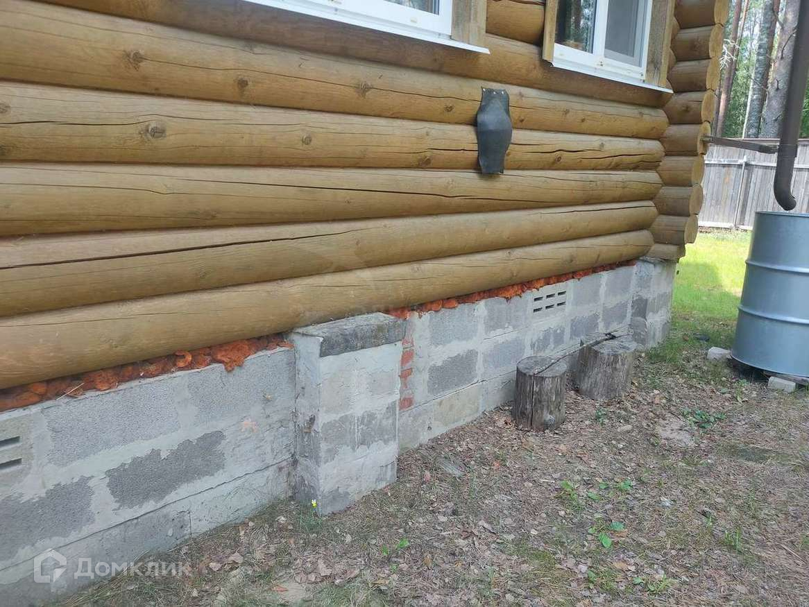 Двухэтажный дом из калиброванного бревна 60 кв.м. Фундамент блочный, двухскатная крыша из металлочерепицы.