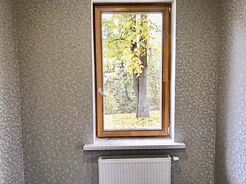 Окна деревянные (лиственница ) со стеклопакетами, экологические ,так как сделаны из натурального материала, обошлись нам в разы дороже пластиковых.Окна все большие и просторные,в комнатах очень светло.