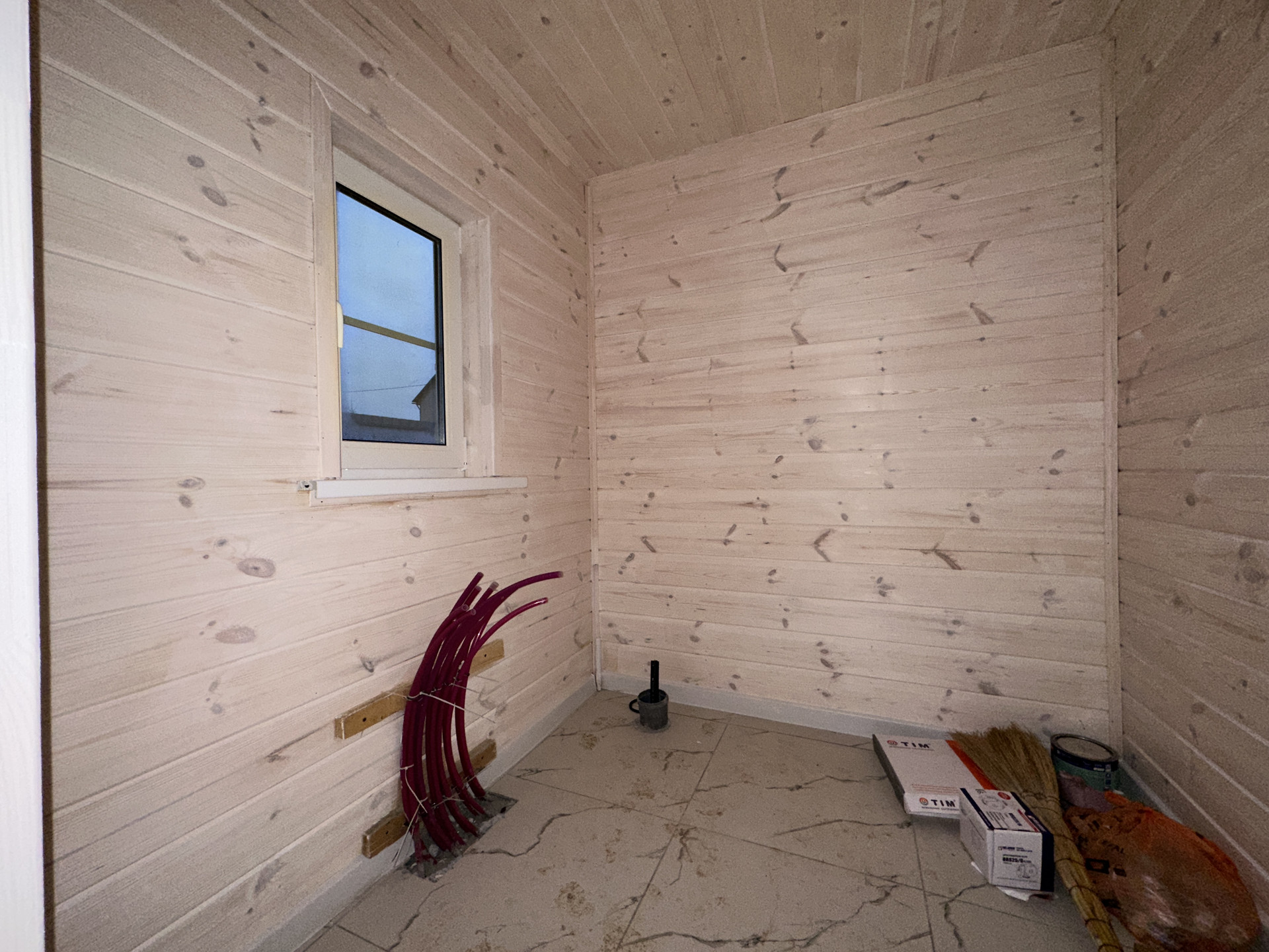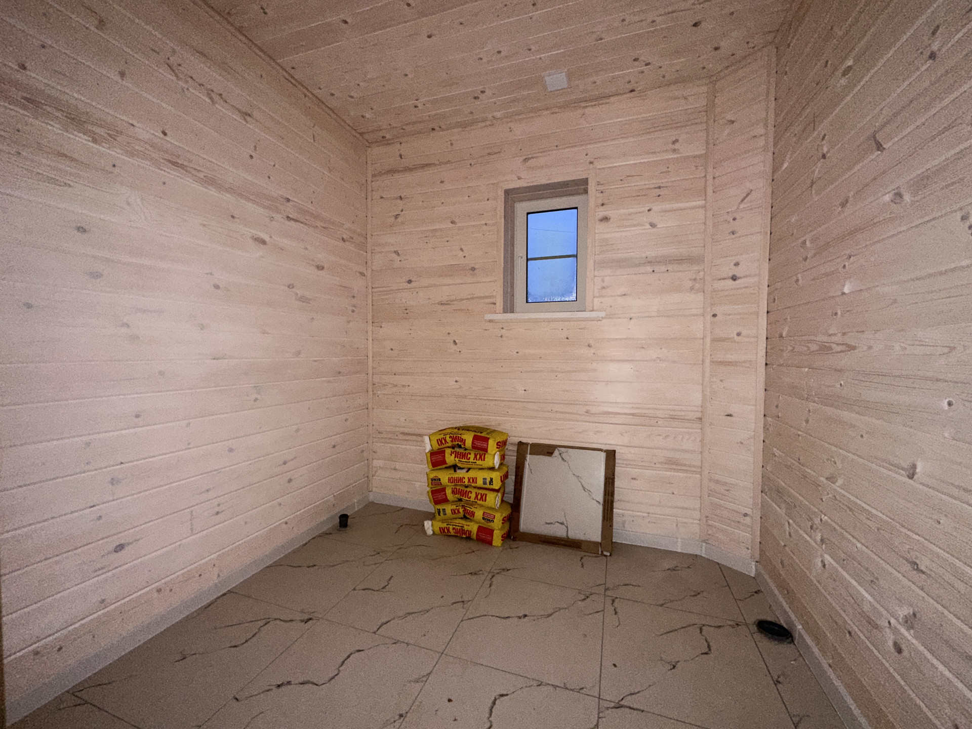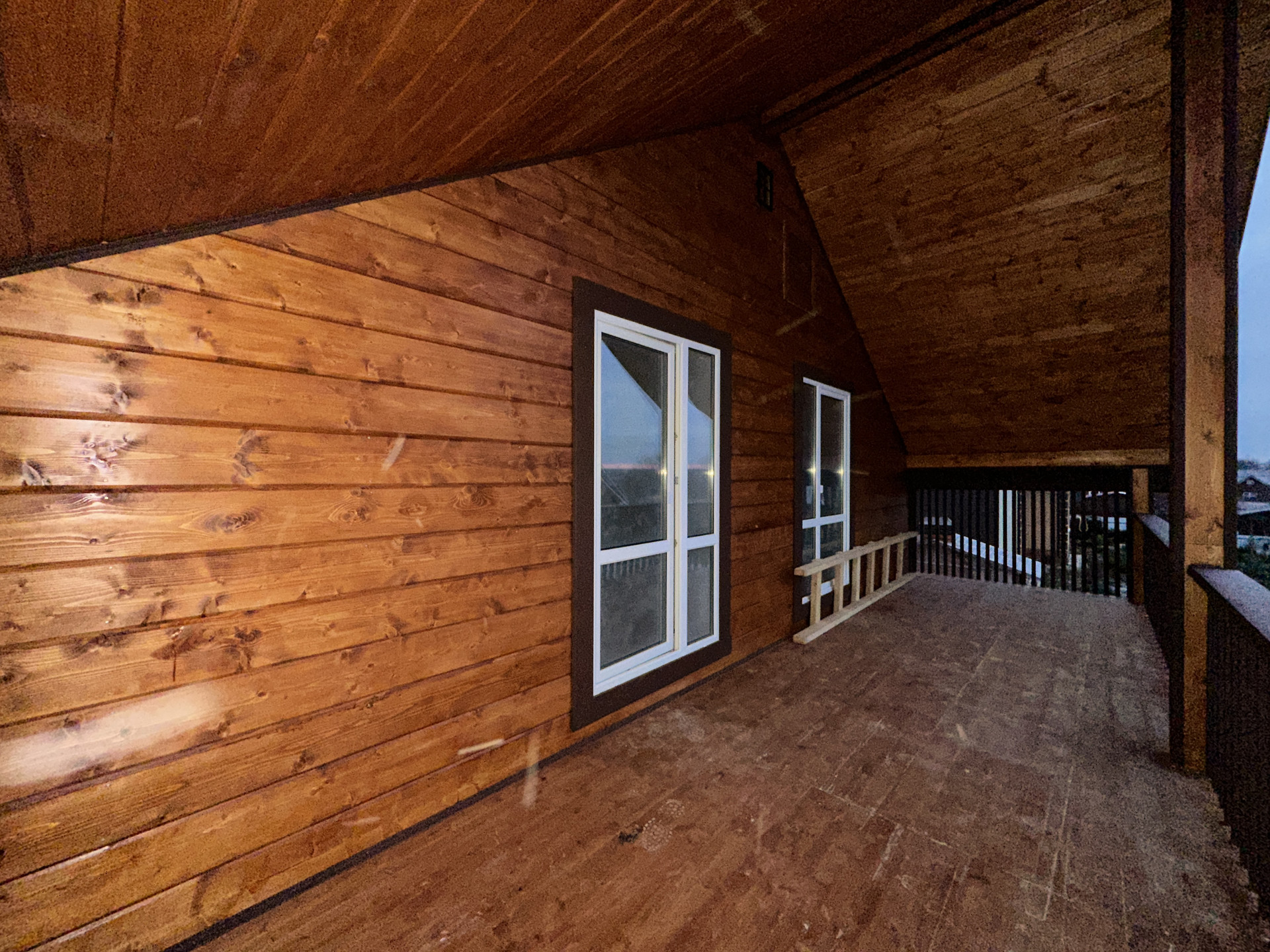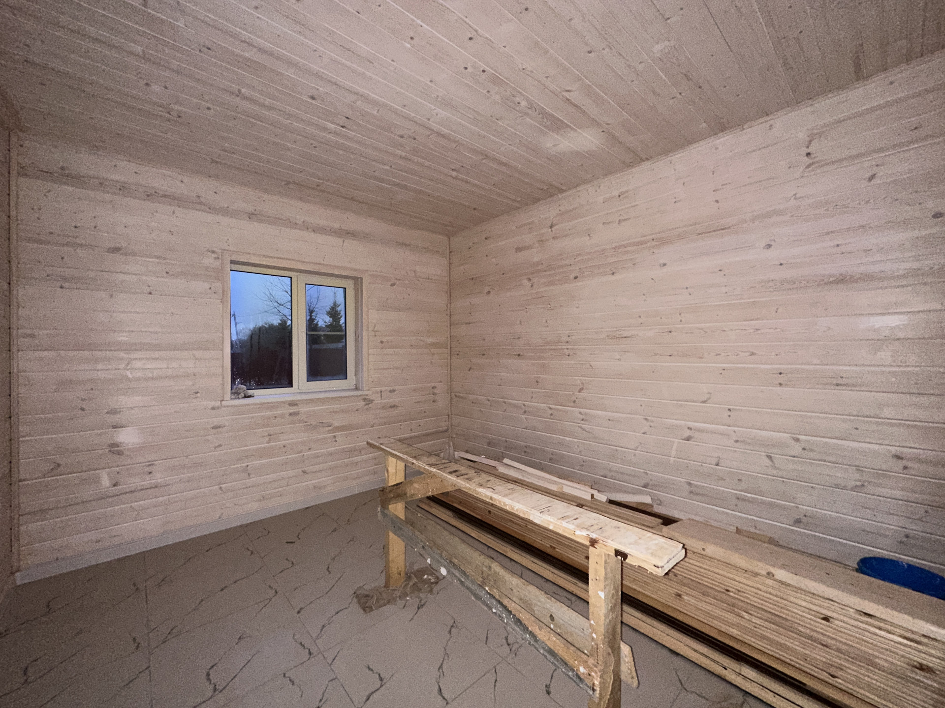 Фундамент - армированная монолитная плита; Стены - брус 100х150мм + утепление 100мм + обработанная имитация бруса; Кровля - металлочерепица с утеплением; Установлена вентиляционная система; Уличное освещение; Окна - стеклопакеты поворотно-откидные двухкамерные; Внутренняя отделка: пол - керамогранит/ламинат; стены - имитация бруса.
