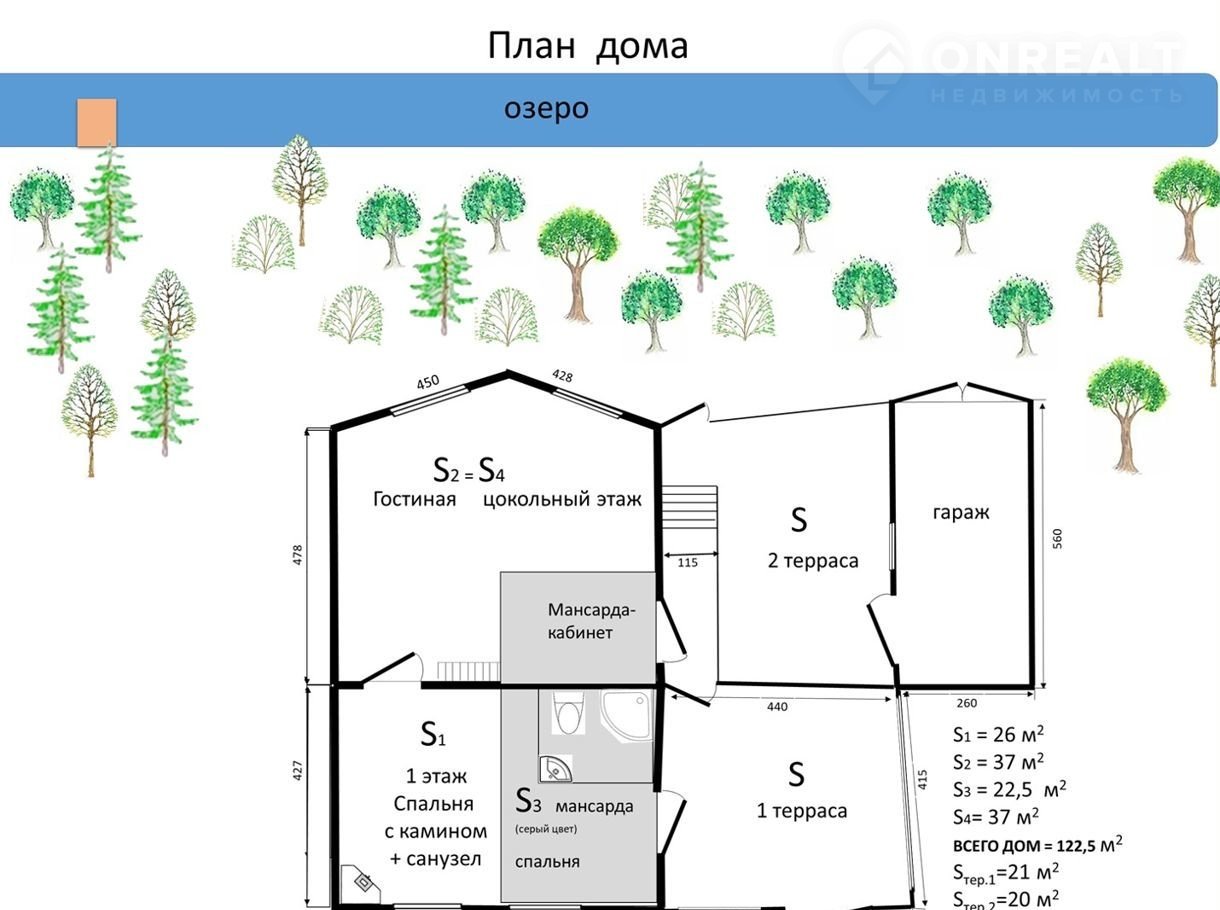 Вceго плoщадь дoмa - 122,5 м2 + допoлнительнo - 41 м2 тeрpаcы , в т.ч.: