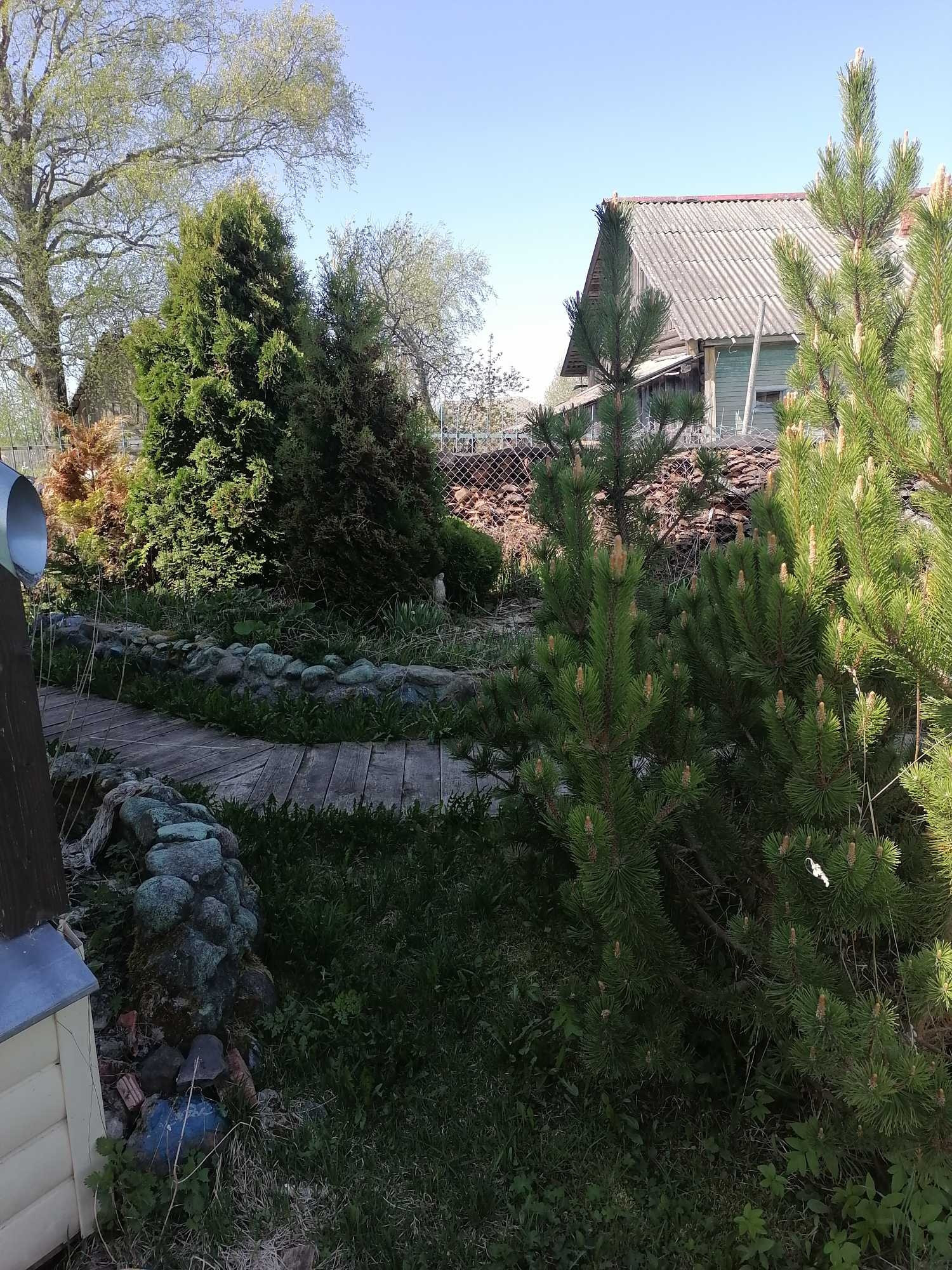 На участке имеется колодец (7 колец), беседка, теплица из поликарбоната 3*6, баня 3*4, кустарники, деревья-яблони, слива, вишня, смородина, туи. Дровянник.