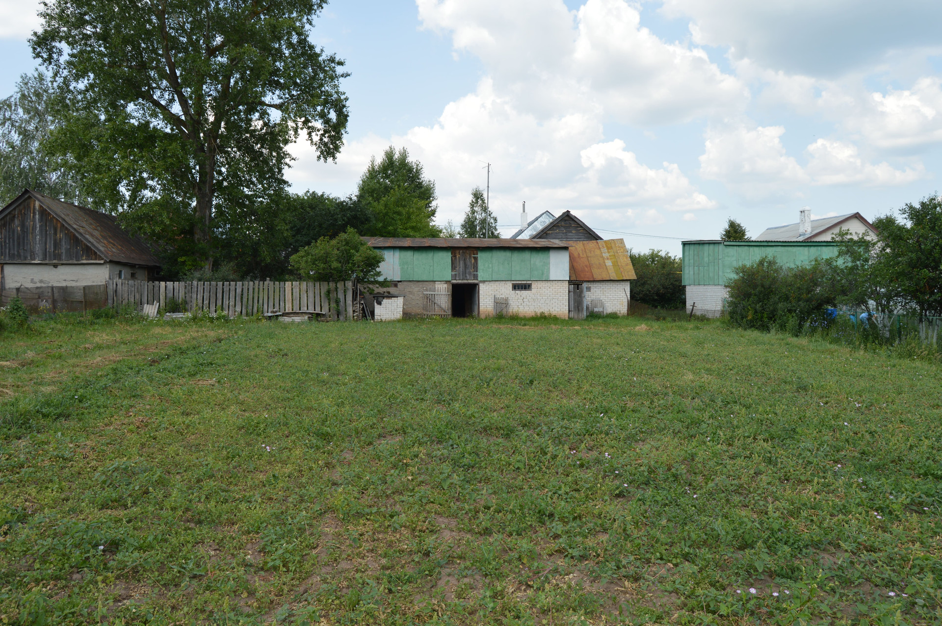Большой кирпичный сарай. Есть гараж. Во дворе отдельно стоящая баня.