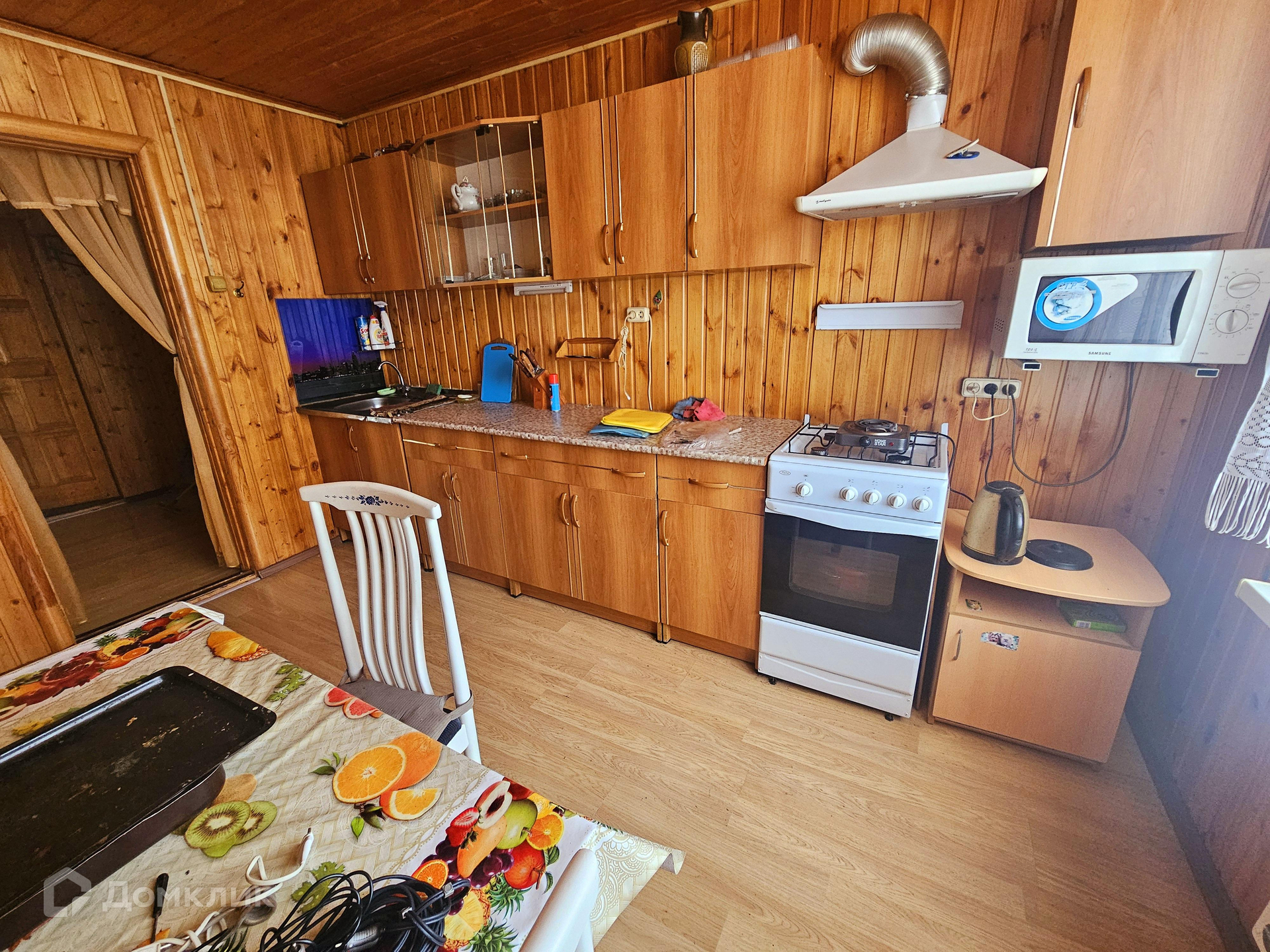 Первый Дом на улице :  45 кв.м. 1 этаж.  2012 года постройки.  2 комнаты 18+12, кухня 8м, с/у 4м.  Внутри вагонка, окна ПВХ, печь, брус, обшит сайдингом, крыша двухскатная.