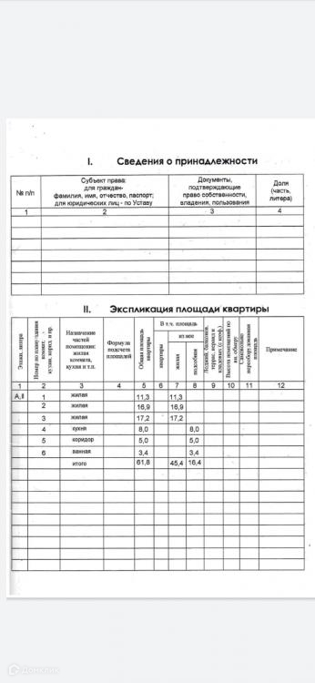 Общая площадь 61.8 м2