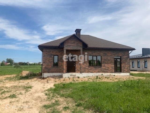 Продам одноэтажный дом на участке 10,35 сотки в новом коттеджном поселке в д. Становщиково. Газ заведен в дом, канализация — качественный септик, вода от собственной скважины, электричество заведено в дом. Дом выстроен из газосиликатных блоков, облицован кирпичом, стоит на свайно-ростверковом фундаменте, кровля гибкая черепица. Соседний участок такой же площади тоже в продаже, можно приобрести, если хочется побольше земли.