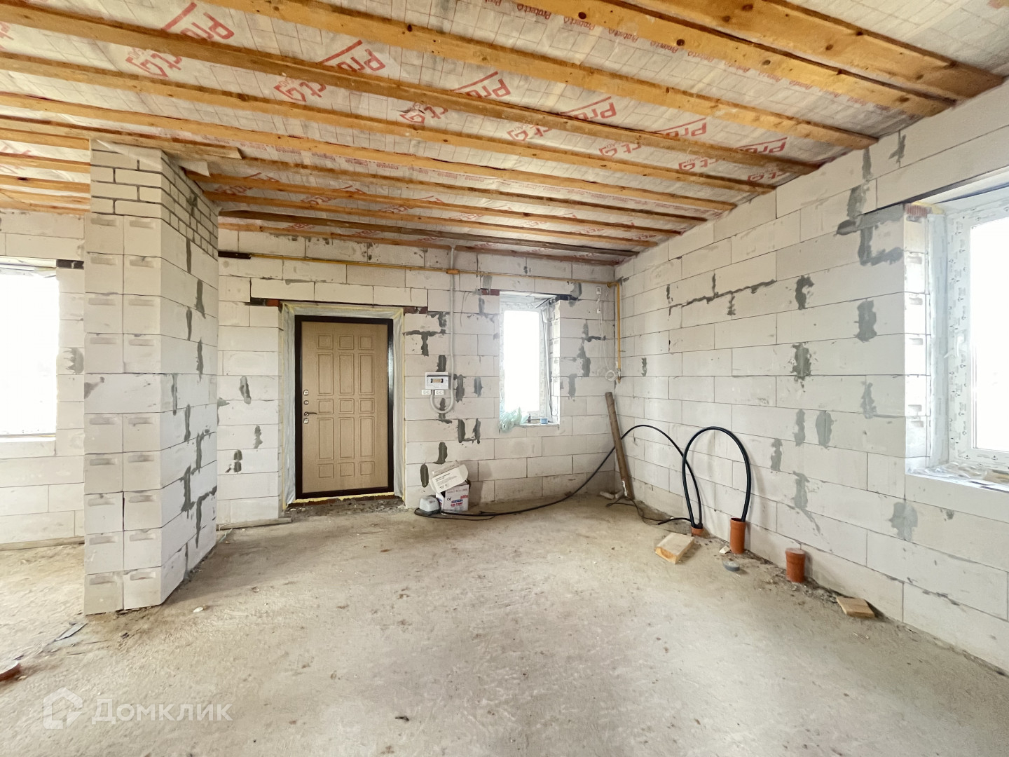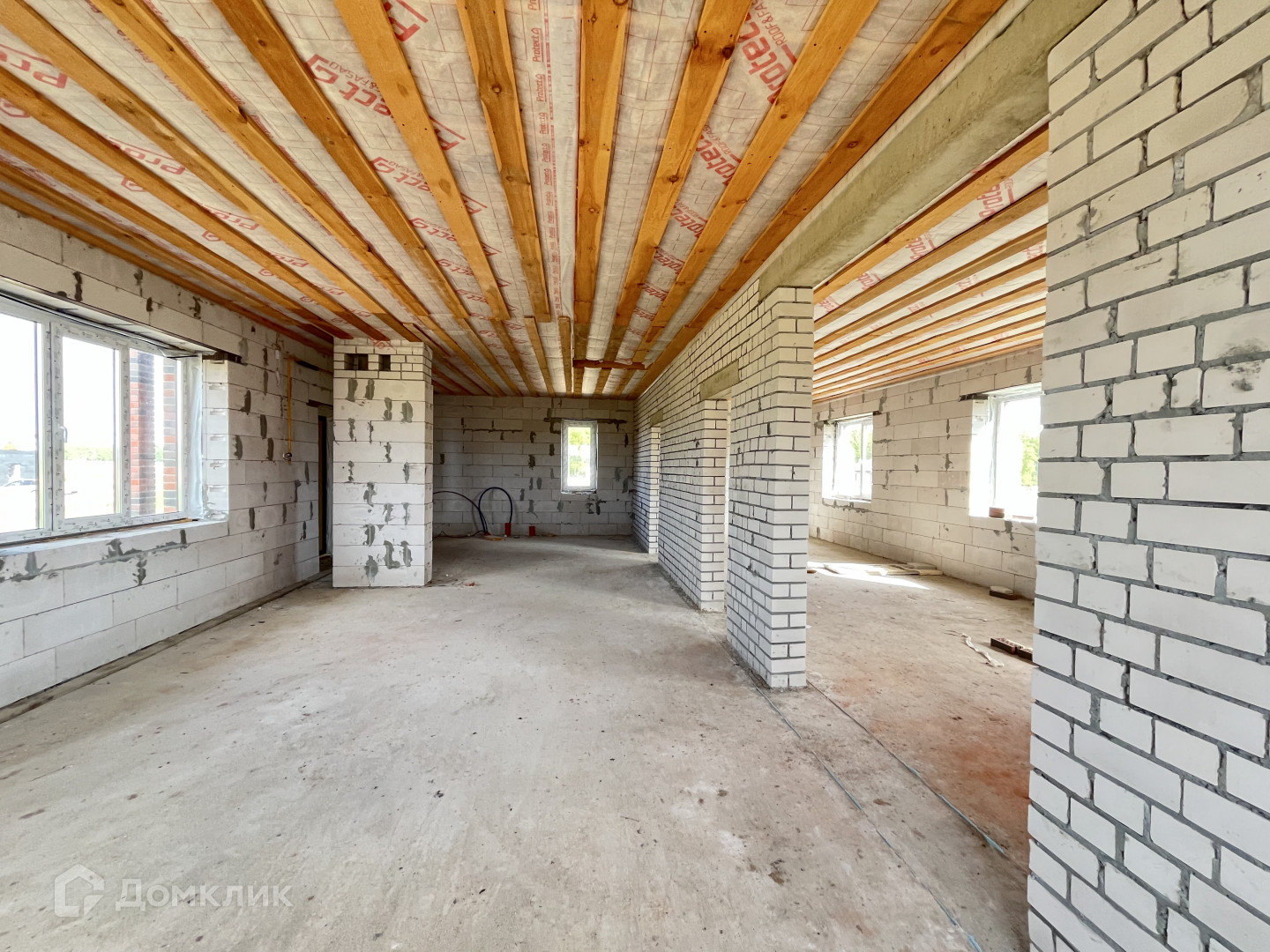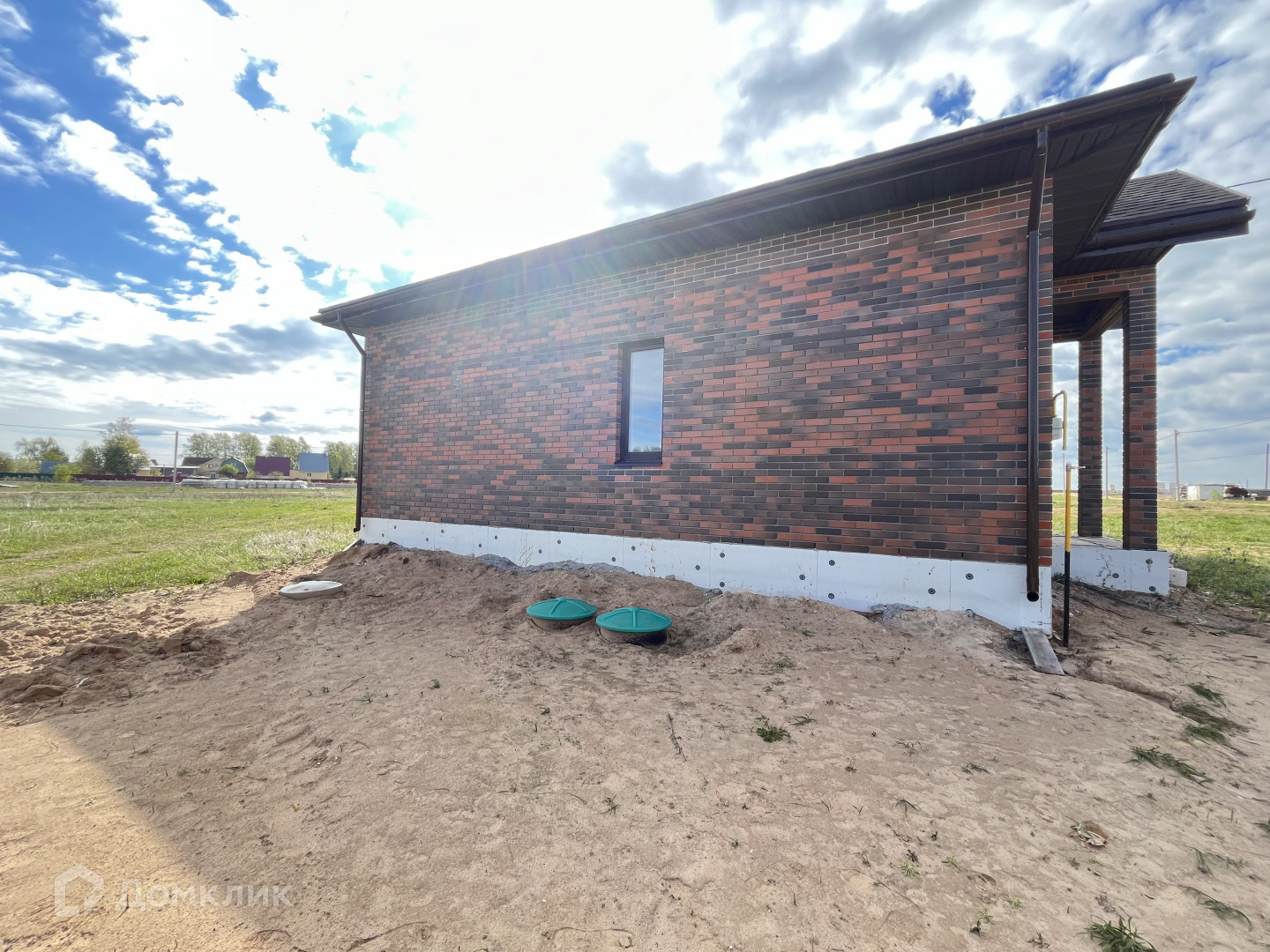Газ заведен в дом, канализация — качественный септик, вода от собственной скважины, электричество заведено в дом. Дом выстроен из газосиликатных блоков, облицован кирпичом, стоит на свайно-ростверковом фундаменте, кровля гибкая черепица.