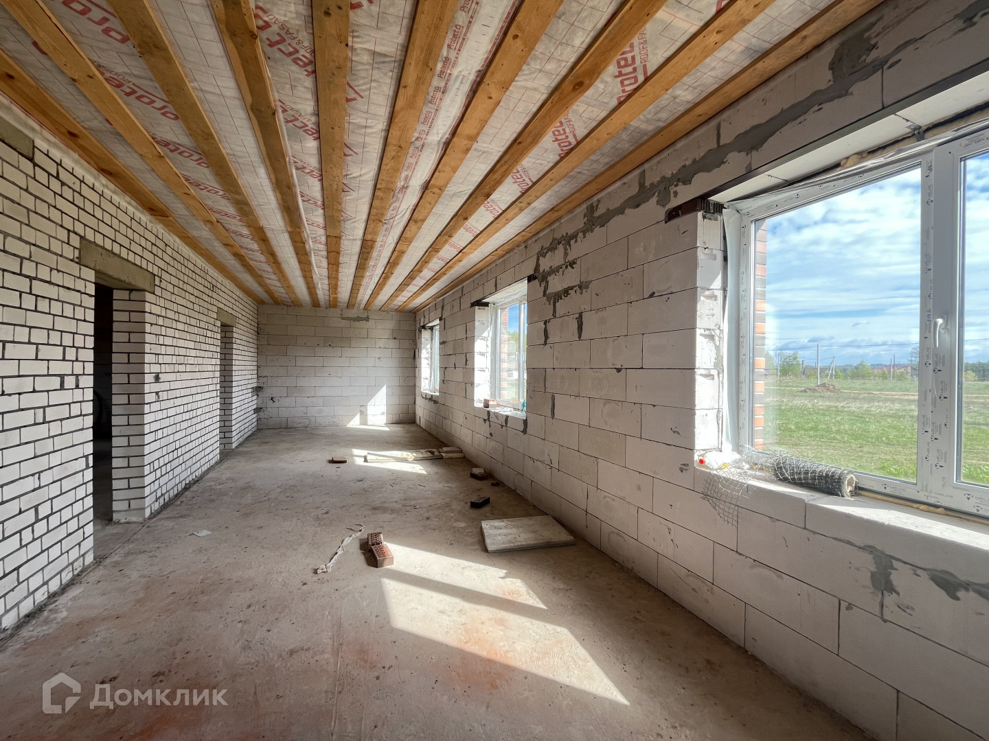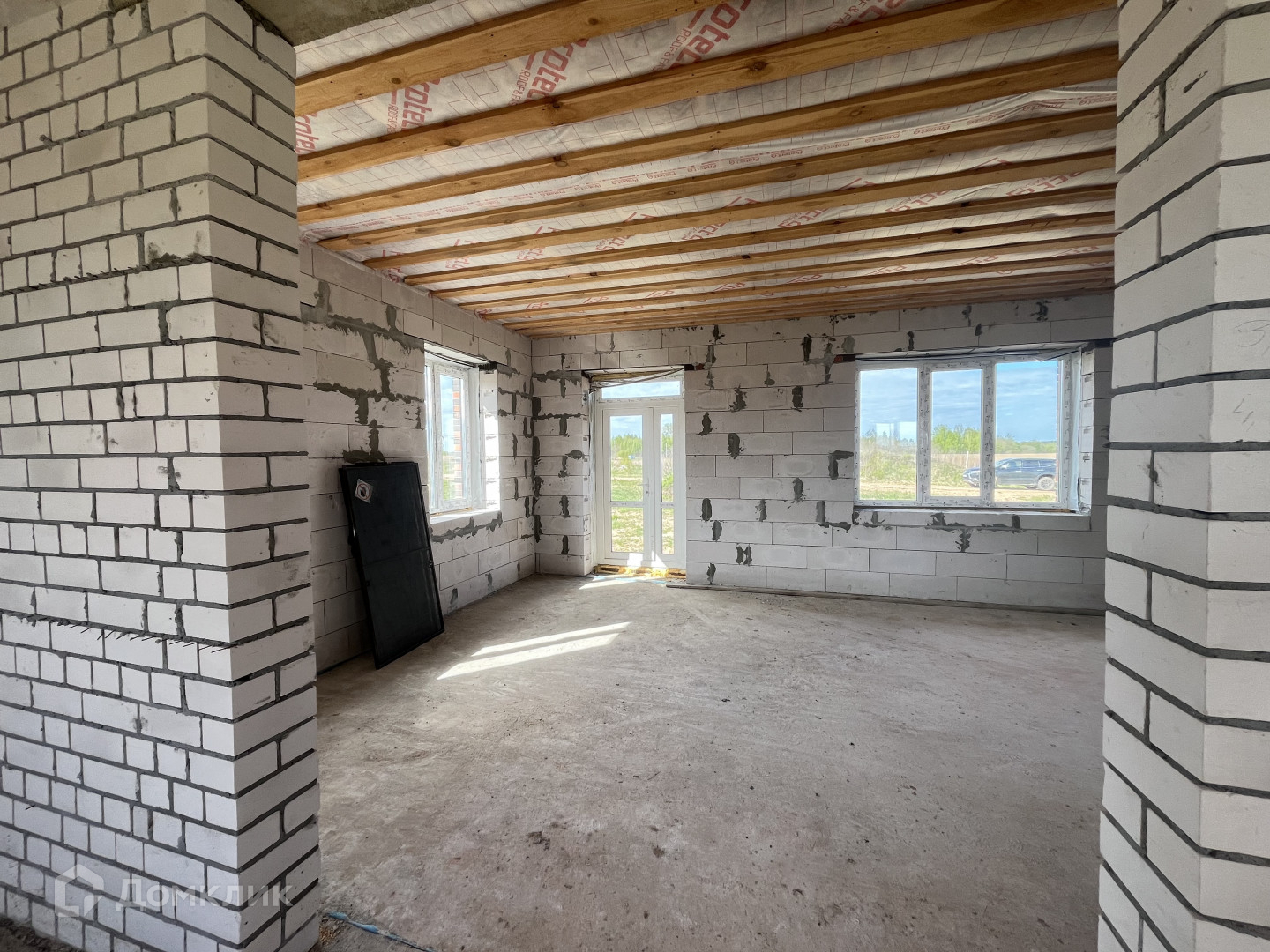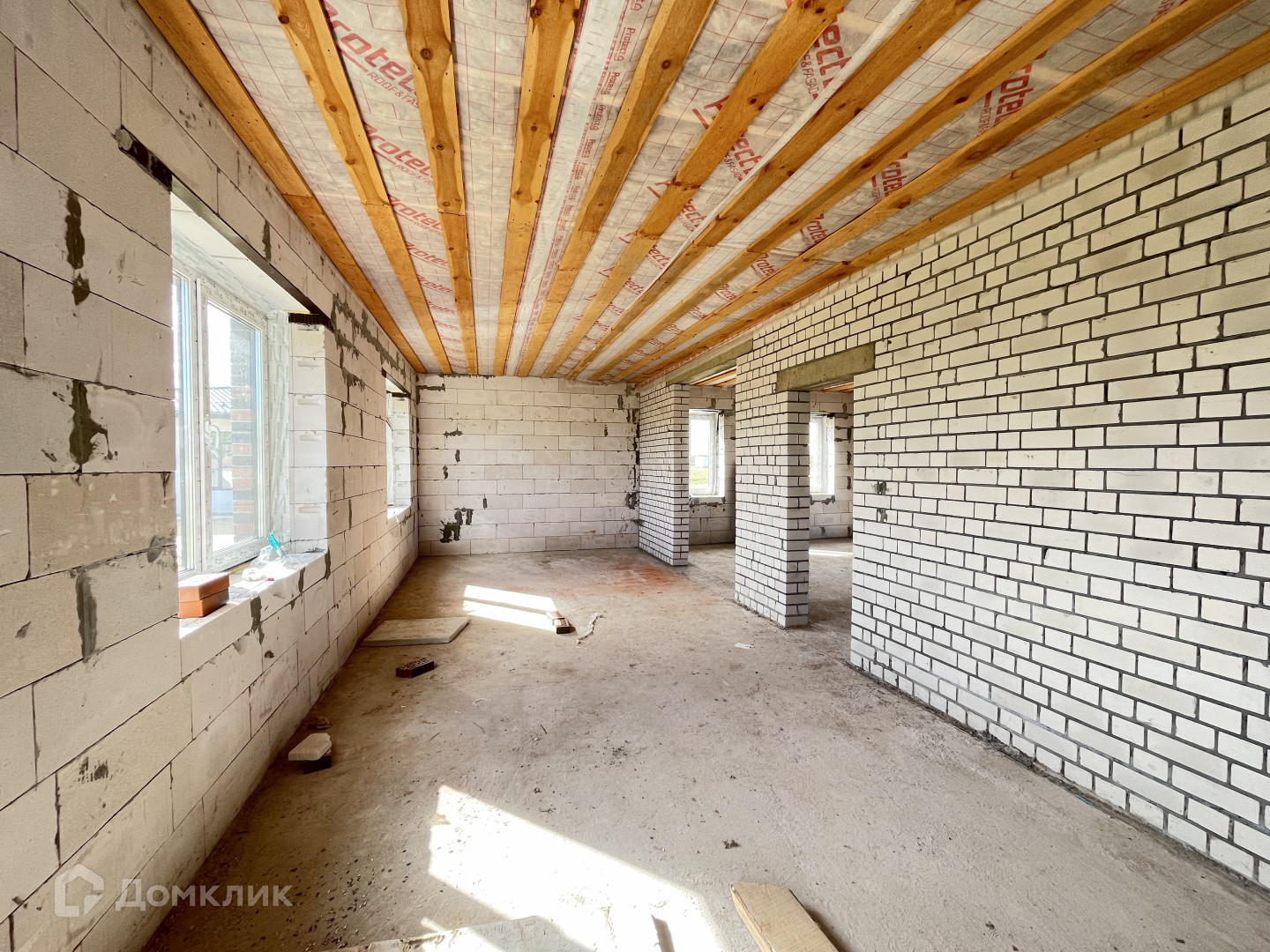 Газ заведен в дом, канализация — качественный септик, вода от собственной скважины, электричество заведено в дом. Дом выстроен из газосиликатных блоков, облицован кирпичом, стоит на свайно-ростверковом фундаменте, кровля гибкая черепица.