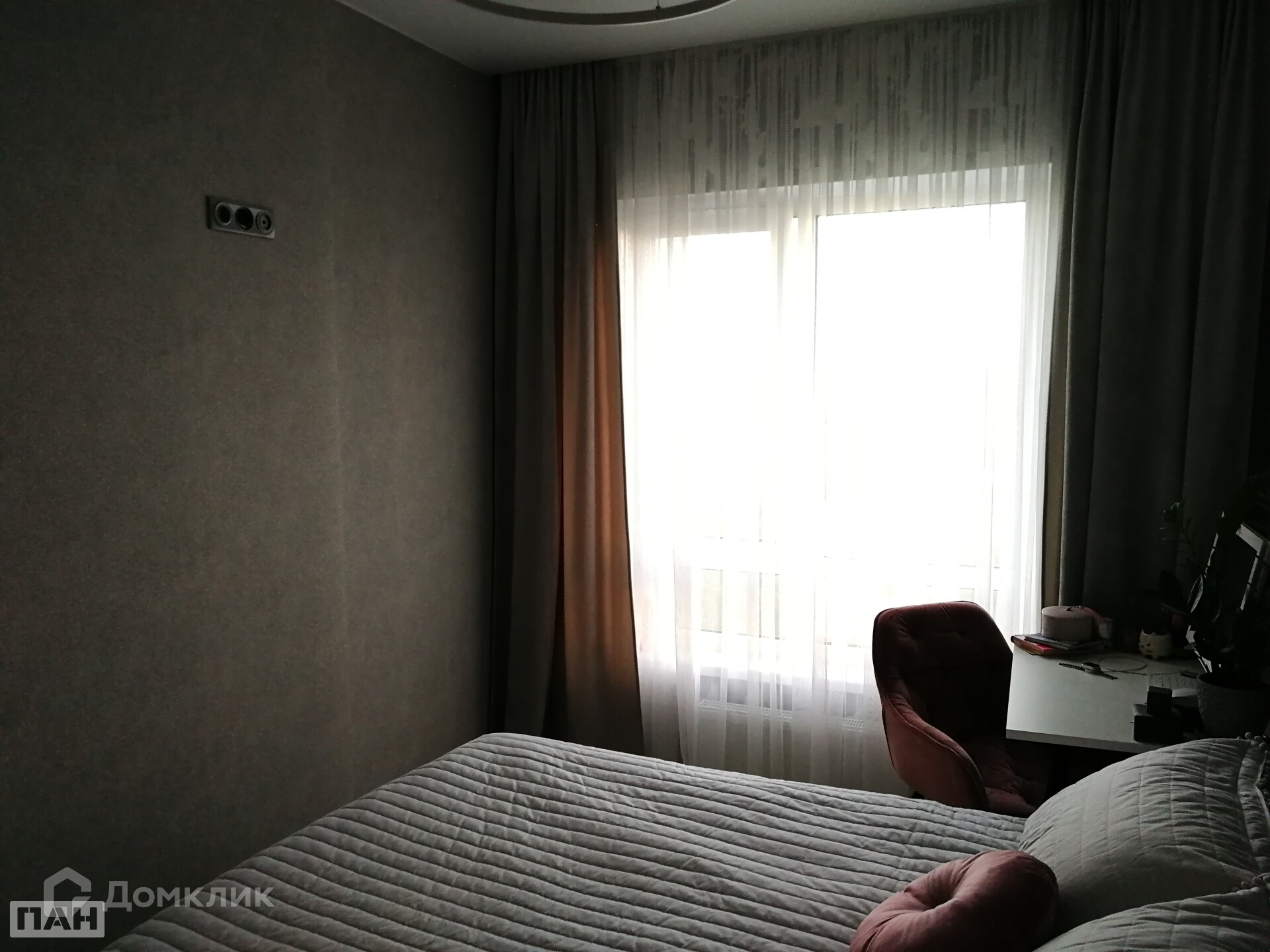 Окно в спальне увеличенное (по проекту), что дает больше естественного освещения в комнате.