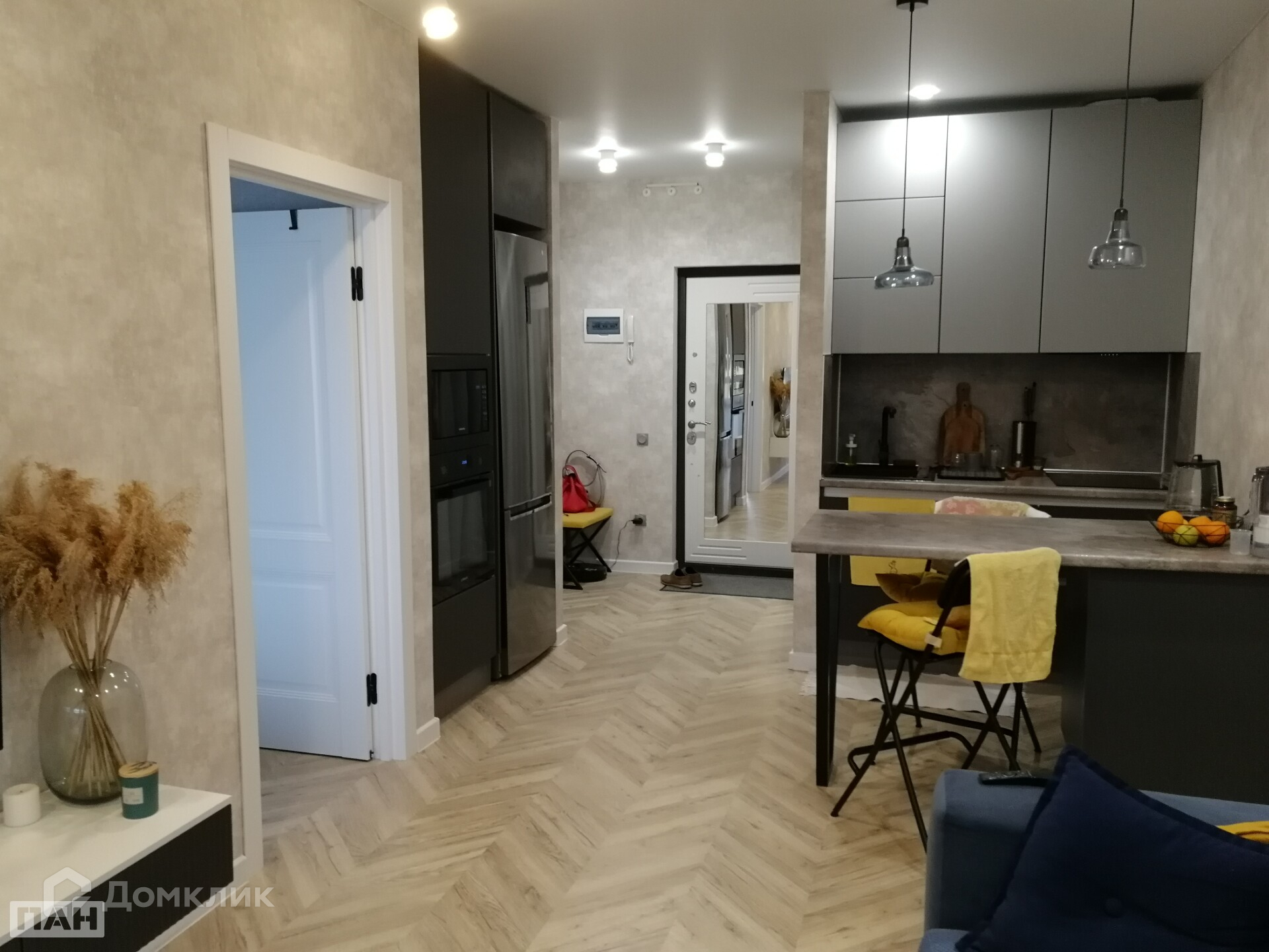 При входе в квартиру ощущается комфорт и уют. Планировка кухни-гостиной прекрасно сочетает в себе зону приготовления и приема пищи, а также зону отдыха и приема гостей.